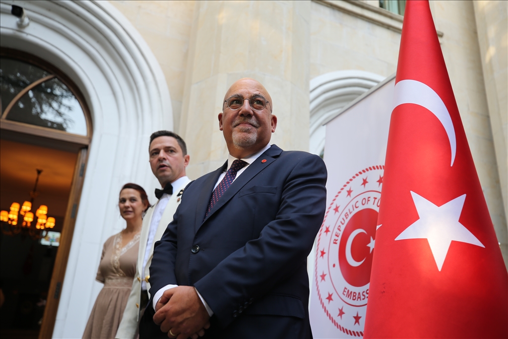 Gürcistan'ın başkenti Tiflis'te 30 Ağustos Zafer Bayramı ve Türk Silahlı Kuvvetleri (TSK) Günü dolayısıyla resepsiyon düzenlendi. Türkiye'nin Tiflis Büyükelçisi Ali Kaan Orbay (sağda) ile Türkiye'nin Tiflis Büyükelçiliği Askeri Ataşesi Albay İlhan Öktendural programa gelen davetlileri karşıladı. (Davit Kachkachishvili - Anadolu Ajansı)Davit Kachkachishvili