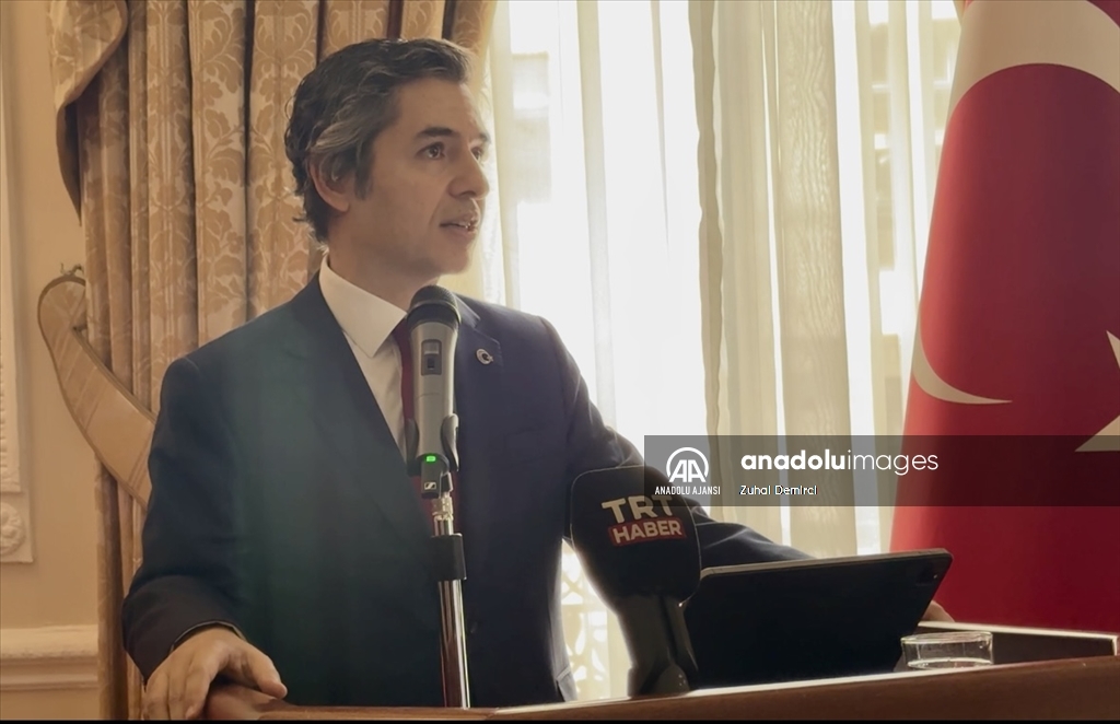 Türkiye'nin Londra Büyükelçiliği konutunda, 30 Ağustos Zafer Bayramı'nın 102'nci yılı dolayısıyla resepsiyon verildi. Türkiye'nin Londra Büyükelçisi Osman Koray Ertaş, programda konuşma yaptı. (Zuhal Demirci - Anadolu Ajansı)Zuhal Demirci