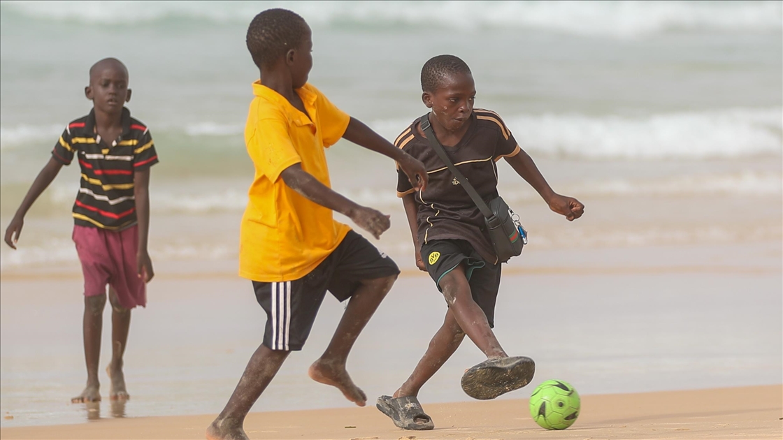Okuldan arta kalan zamanlarda Atlantik Okyanusu’nun kıyısındaki ince kumsalda toplanan çocuklar, enerjilerini futbol oynayarak harcıyorlar.Cem Özdel