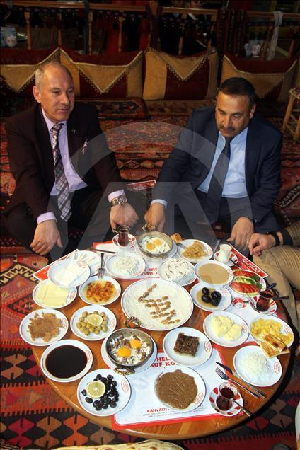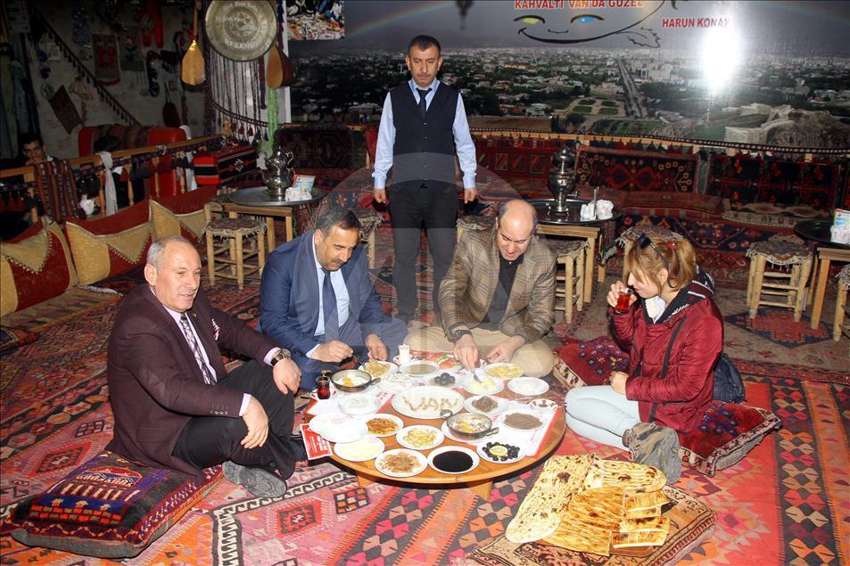 Yöreye özgü 20 farklı ürünle hem göze hem de mideye hitap eden Van kahvaltısı, yerli ve yabancı misafirlerin ilgi odağı oluyor.