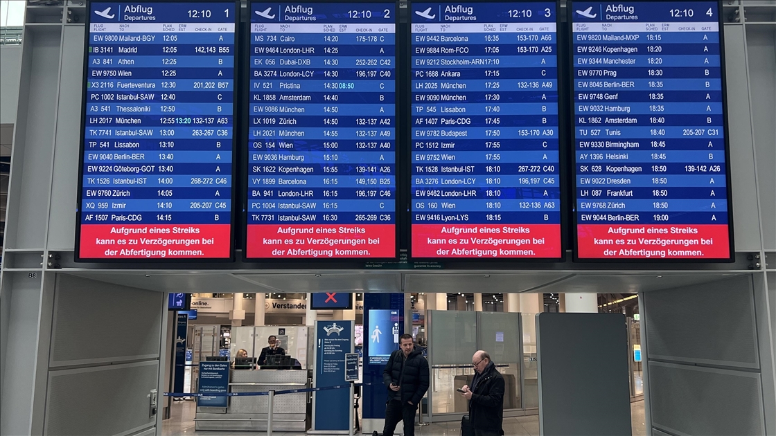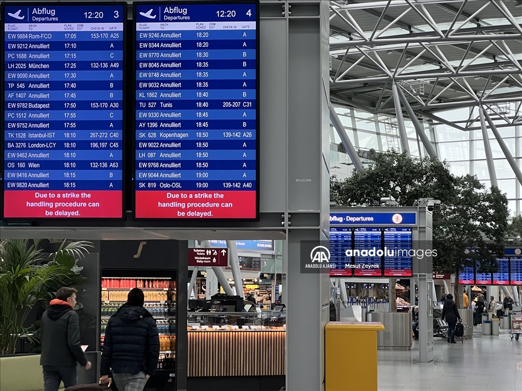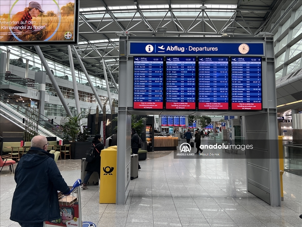 Almanya'nın Düsseldorf Havalimanı'nda bagaj ve uçak taşıma şirketi çalışanlarının bir günlük uyarı grevi nedeniyle seferlerin yaklaşık üçte biri iptal edildi, bazı uçuşlarda gecikmeler yaşandı.
