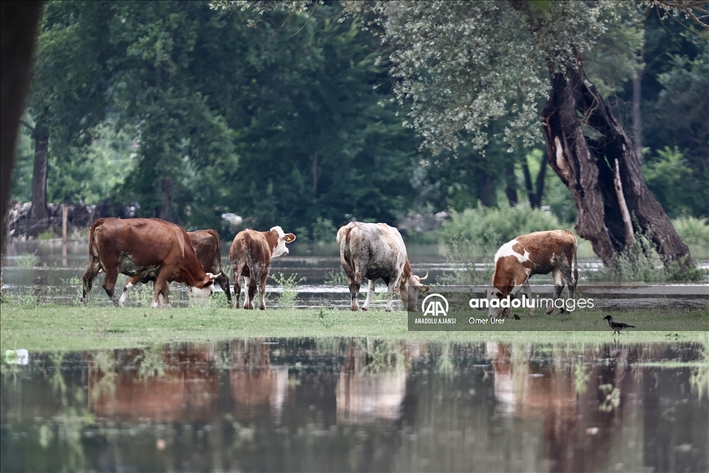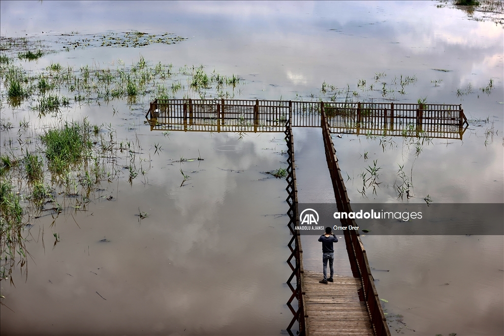 Düzce'de dün akşamdan itibaren etkili olan yağışlar su baskınlarına yol açtı. Efteni Gölü ve çevresinde taşmalar meydana geldi. Şiddetli yağış nedeniyle zarar gören yol ve köprülerde onarım çalışması sürüyor. ( Ömer Ürer - Anadolu Ajansı )Ömer Ürer