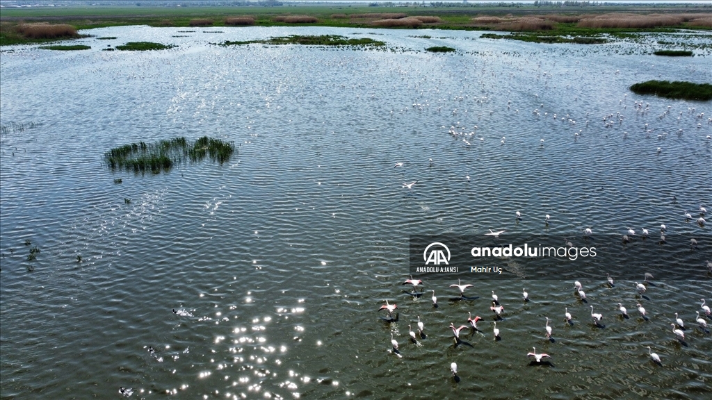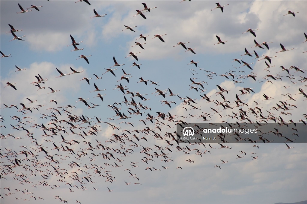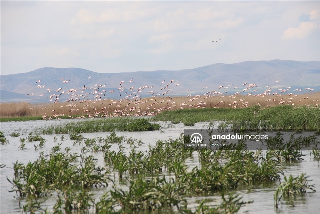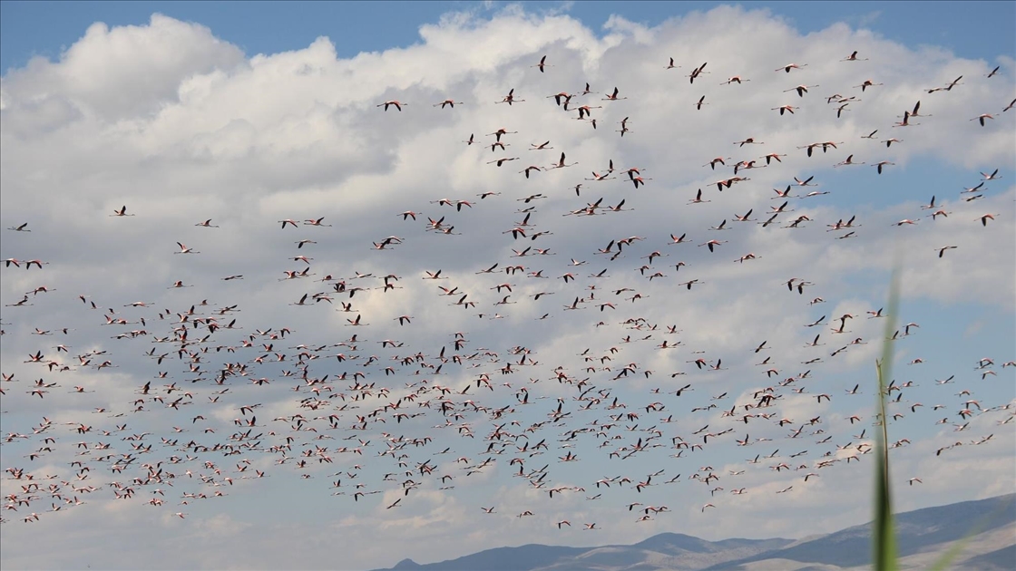 Afyonkarahisar'ın Bolvadin ilçesi sınırlarındaki birçok göçmen kuşa ev sahipliği yapan Eber Gölü, flamingoların uğrak yeri oldu. ( Mahir Uç - Anadolu Ajansı )Mahir Uç