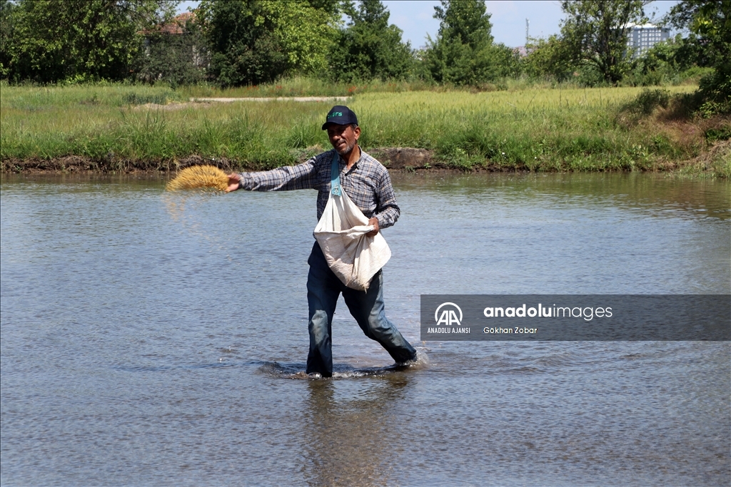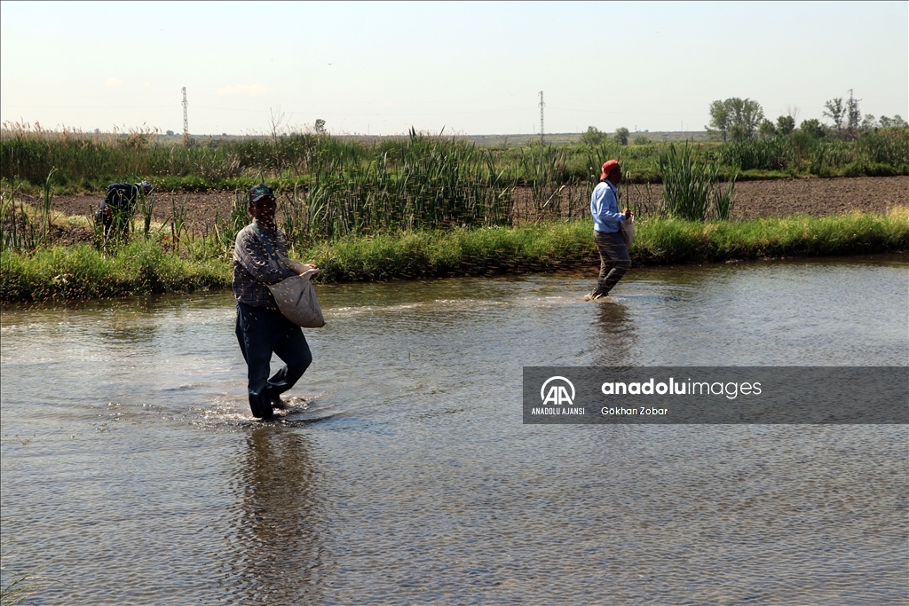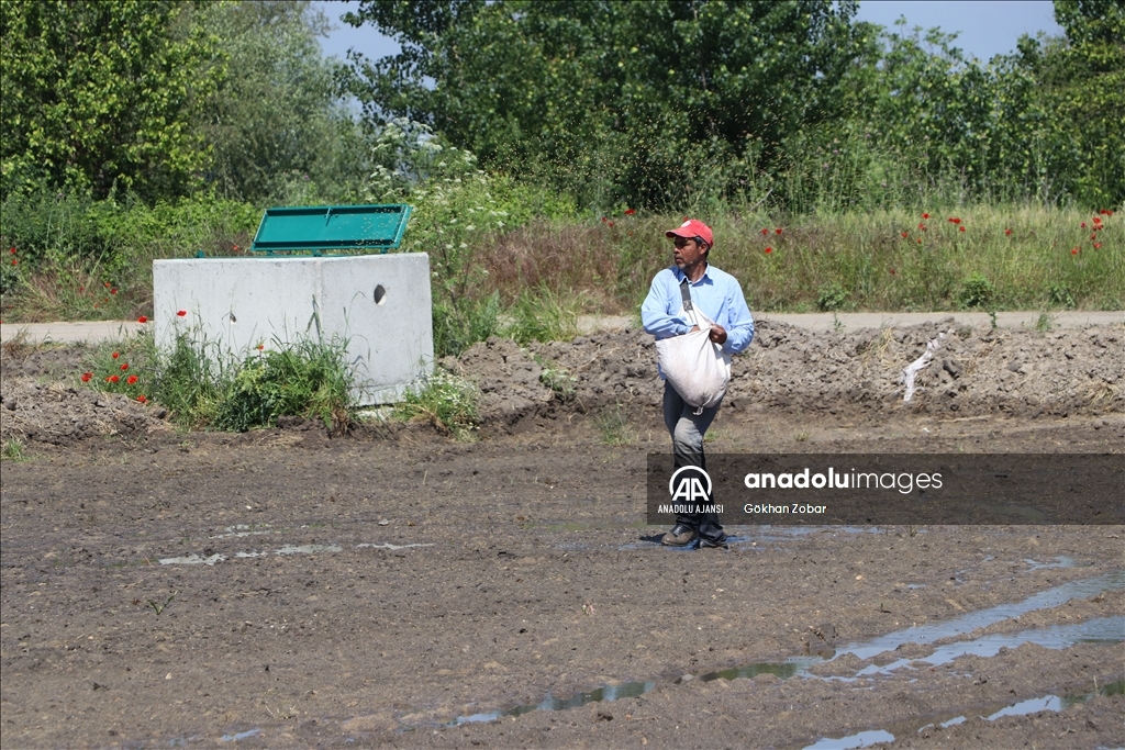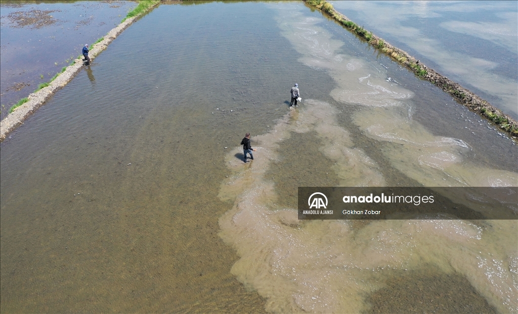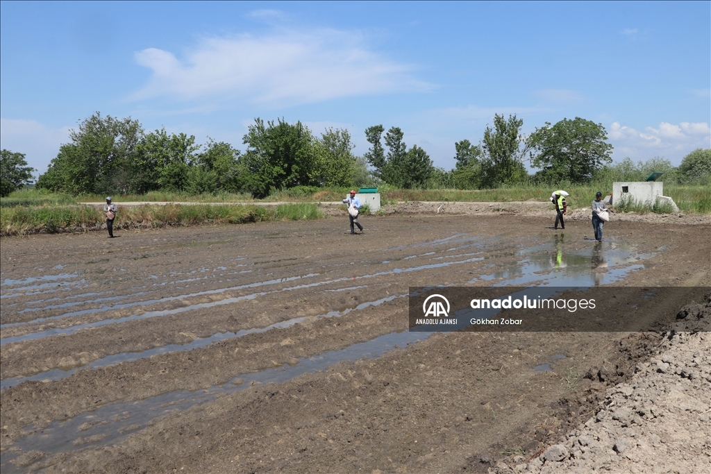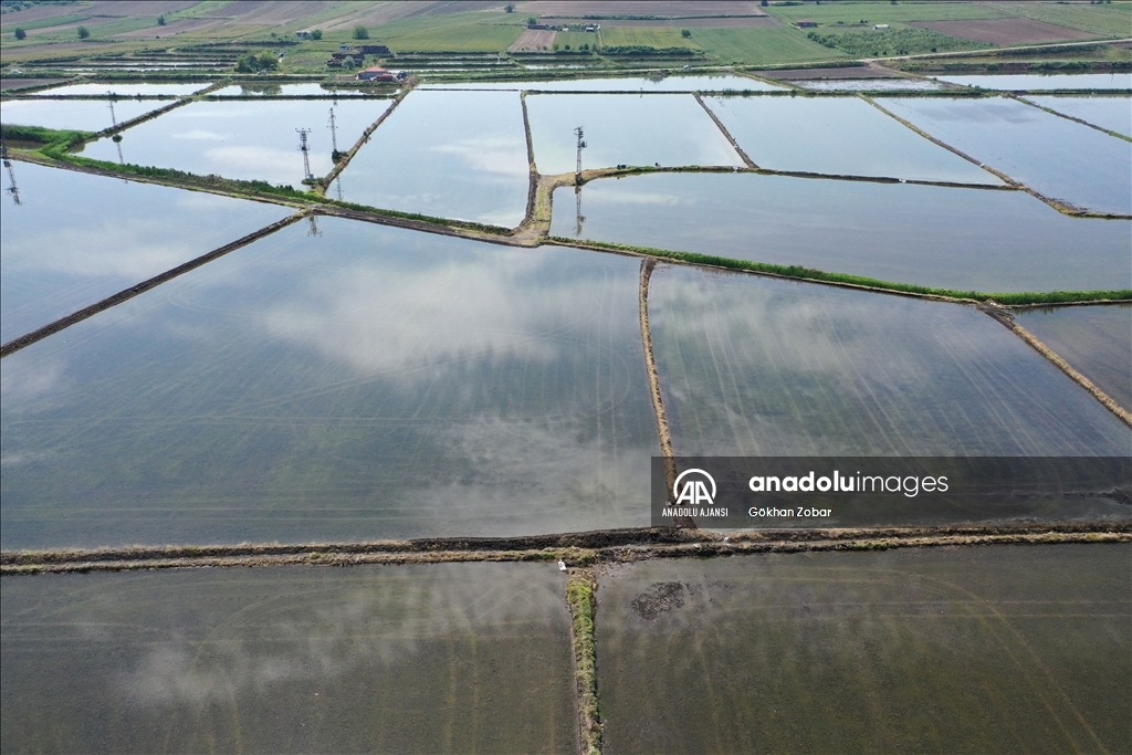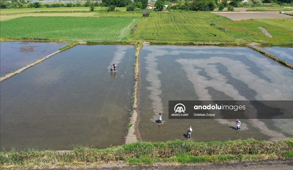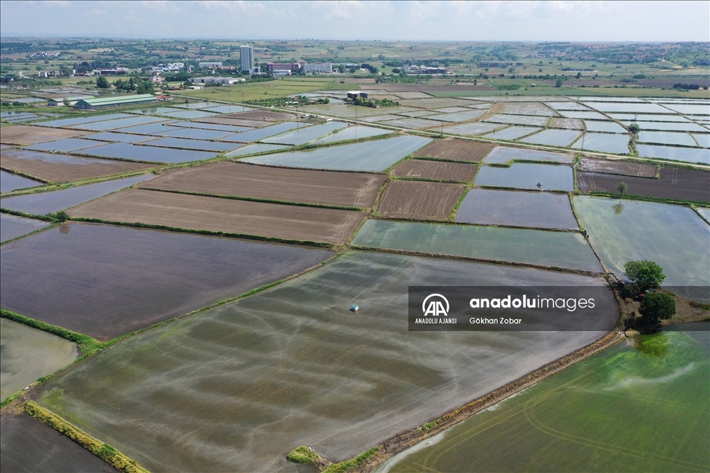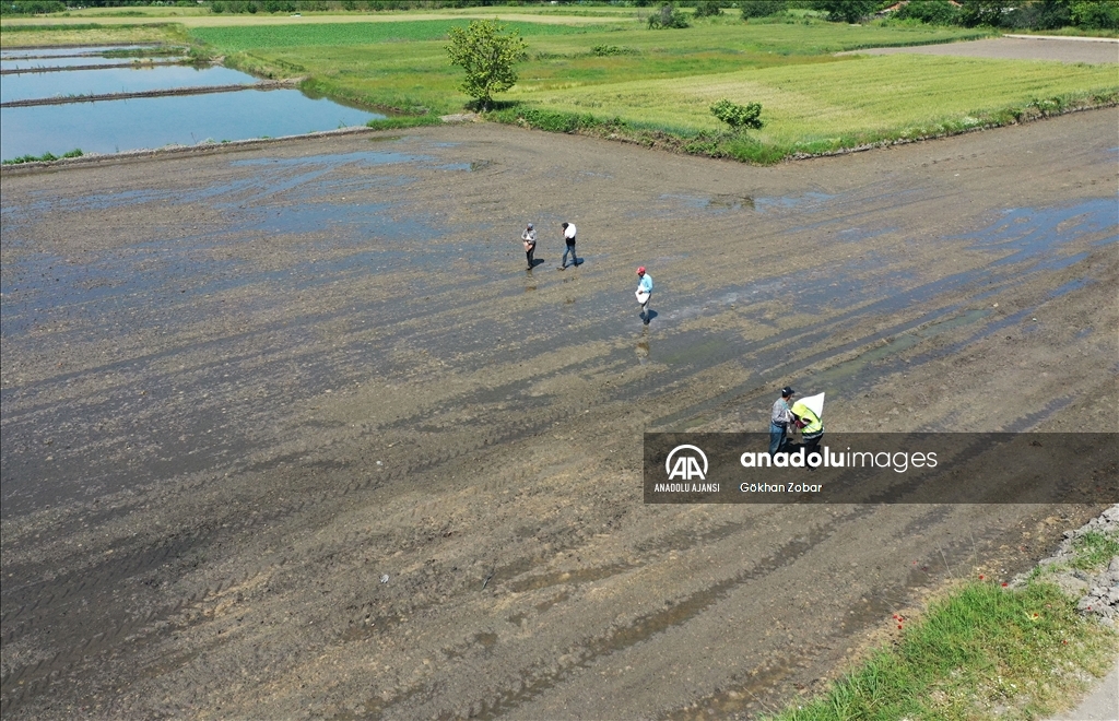 Türkiye'nin önemli çeltik üretim merkezlerinden Edirne'de üreticilerin çeltik mesaisi başladı. Ekim öncesi tarlaları hazırlayan üreticiler, su salma işleminin ardından çeltik tohumlarını toprakla buluşturuyor.