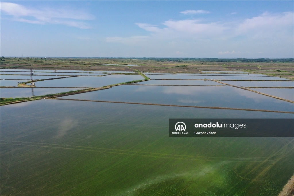 Türkiye'nin önemli çeltik üretim merkezlerinden Edirne'de üreticilerin çeltik mesaisi başladı. Ekim öncesi tarlaları hazırlayan üreticiler, su salma işleminin ardından çeltik tohumlarını toprakla buluşturuyor. Bahar yağışları nedeniyle gecikmeli olarak tarlalara giren üreticilerin ekim mesaisinin yaklaşık bir ay sürmesi bekleniyor. ( Gökhan Zobar - Anadolu Ajansı )Gökhan Zobar