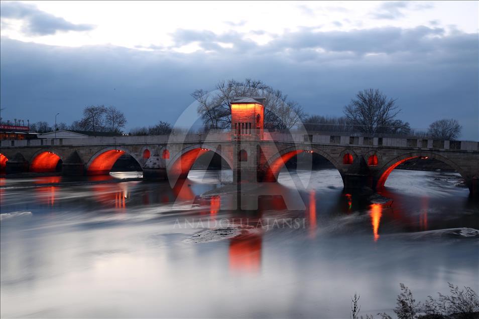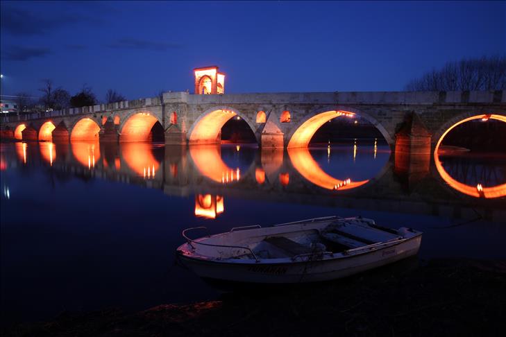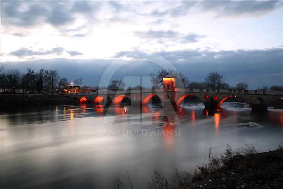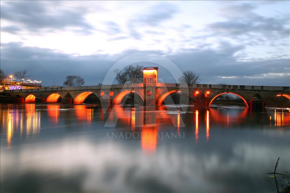 Edirne'de kent merkezinden akan Tunca Nehri gün batımında farklı bir manzaraya bürünüyor. Gün batımında mavi ve gri rengin gökyüzüne hakim olduğu dakikalarda Tunca Nehri üzerindeki köprünün suya düşen gölgesi büyüleyici bir manzara sunuyor. ( Hakan Mehmet Şahin - Anadolu Ajansı )Hakan Mehmet Şahin