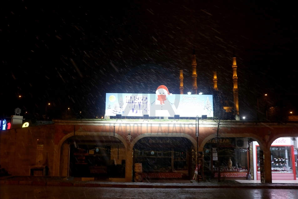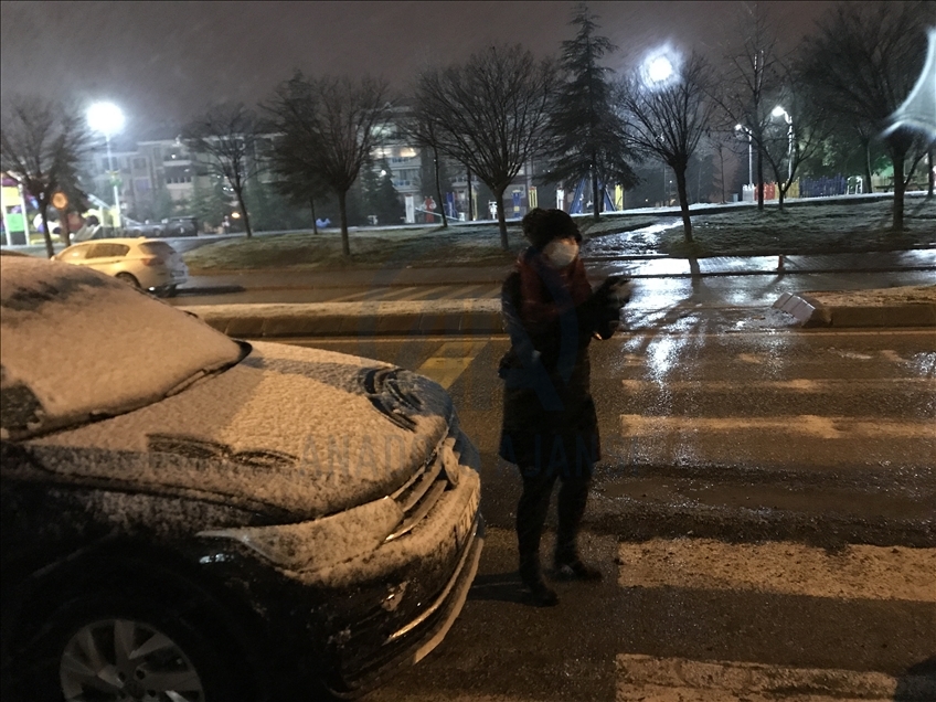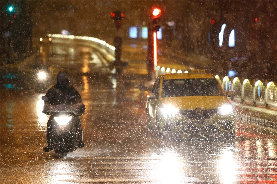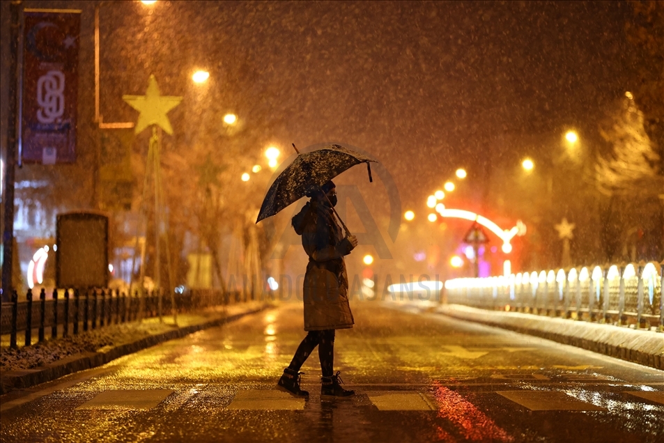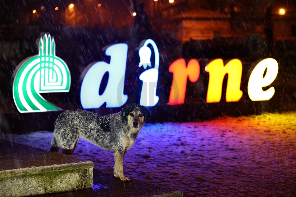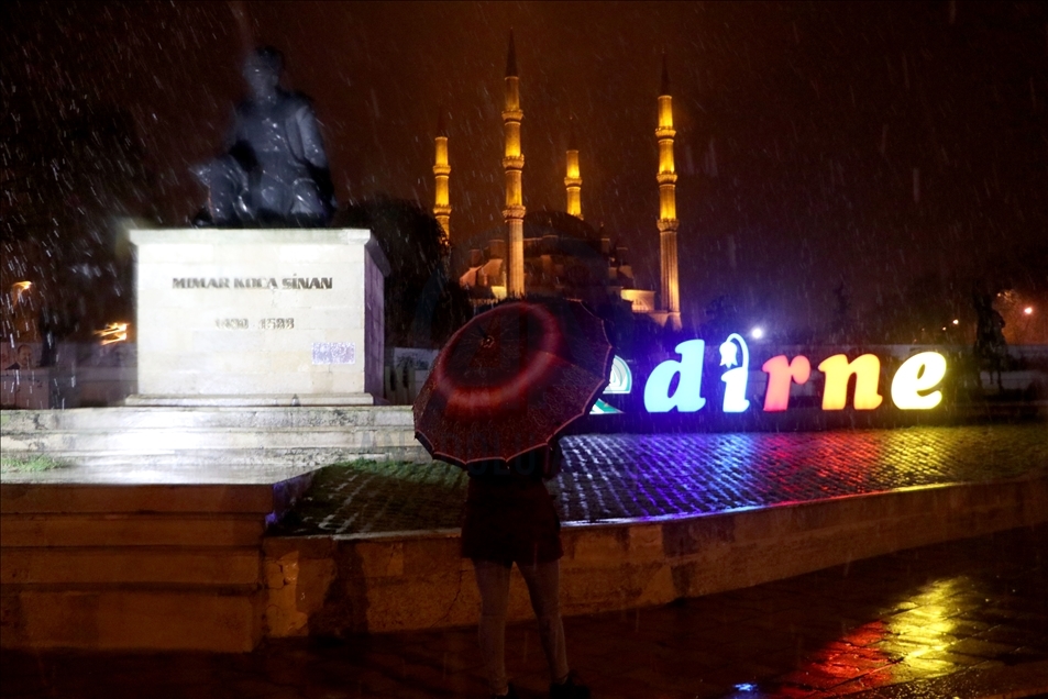 Edirne'de akşam saatlerinde başlayan yağmur, hava sıcaklığının düşmesiyle kar yağışına dönüştü. ( Gökhan Balcı - Anadolu Ajansı )Gökhan Balcı