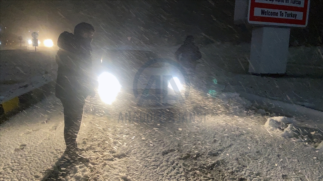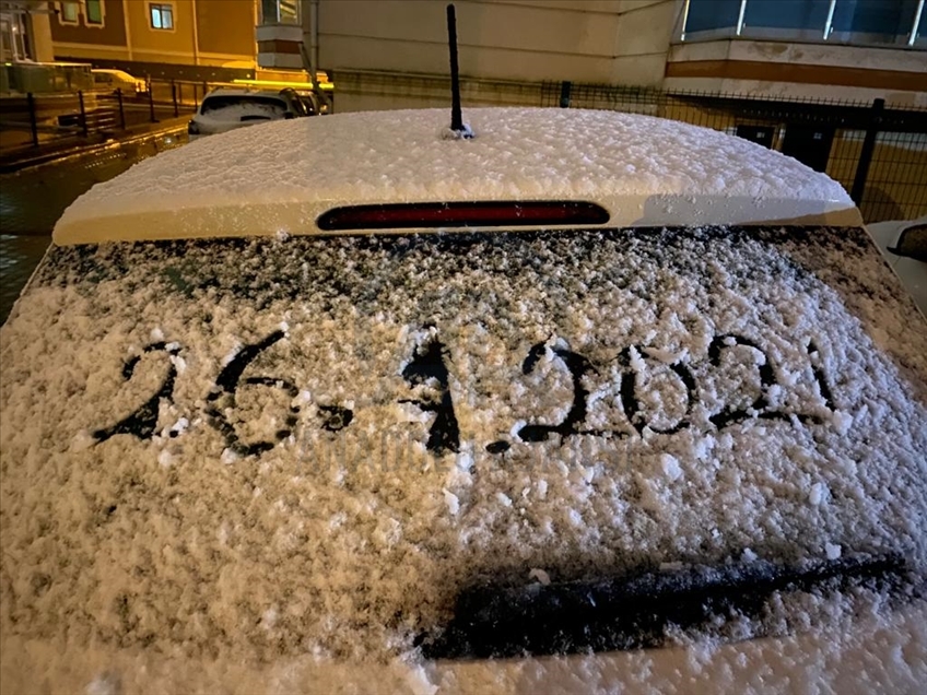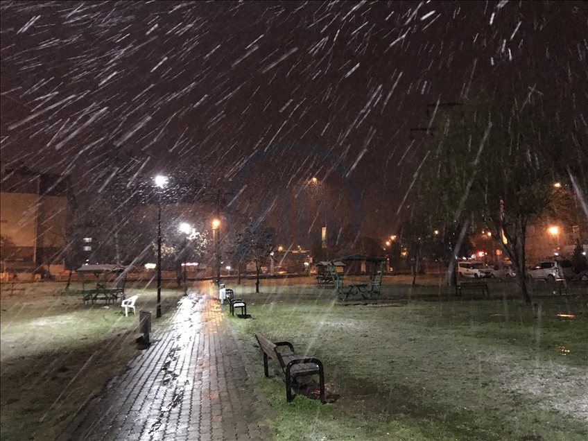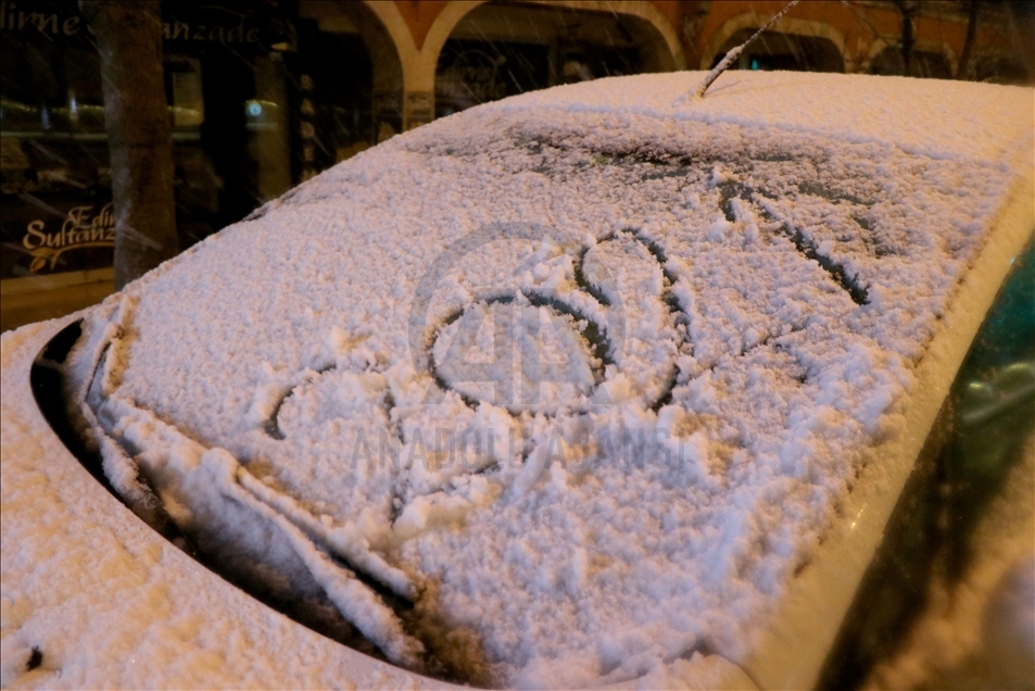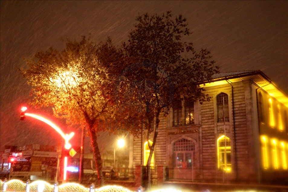 Edirne'de akşam saatlerinde başlayan yağmur, hava sıcaklığının düşmesiyle kar yağışına dönüştü. ( Gökhan Balcı - Anadolu Ajansı )Gökhan Balcı