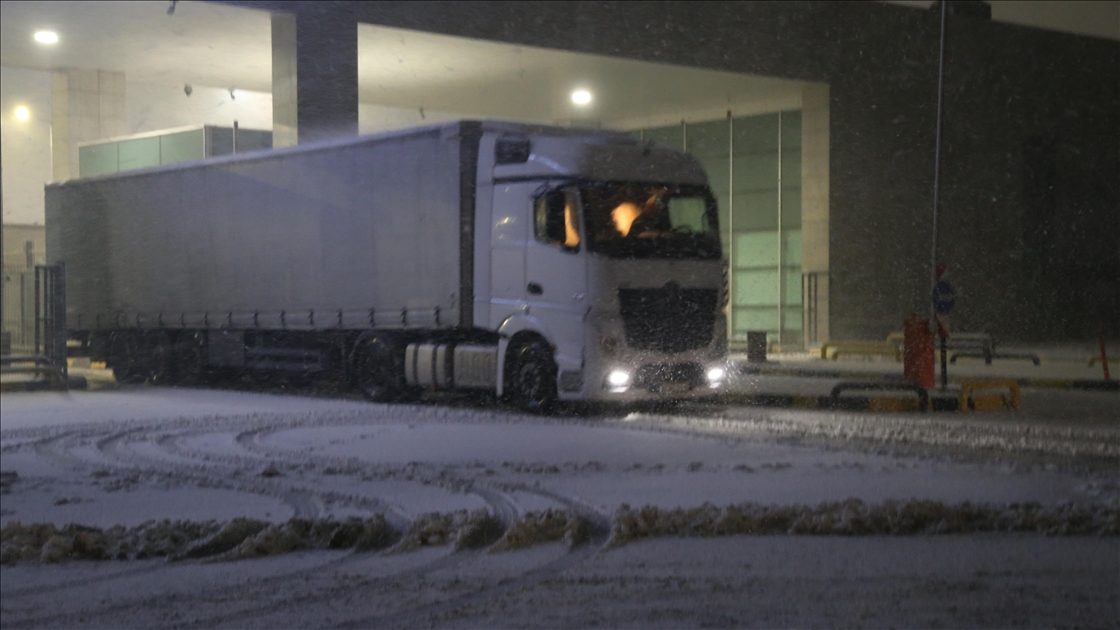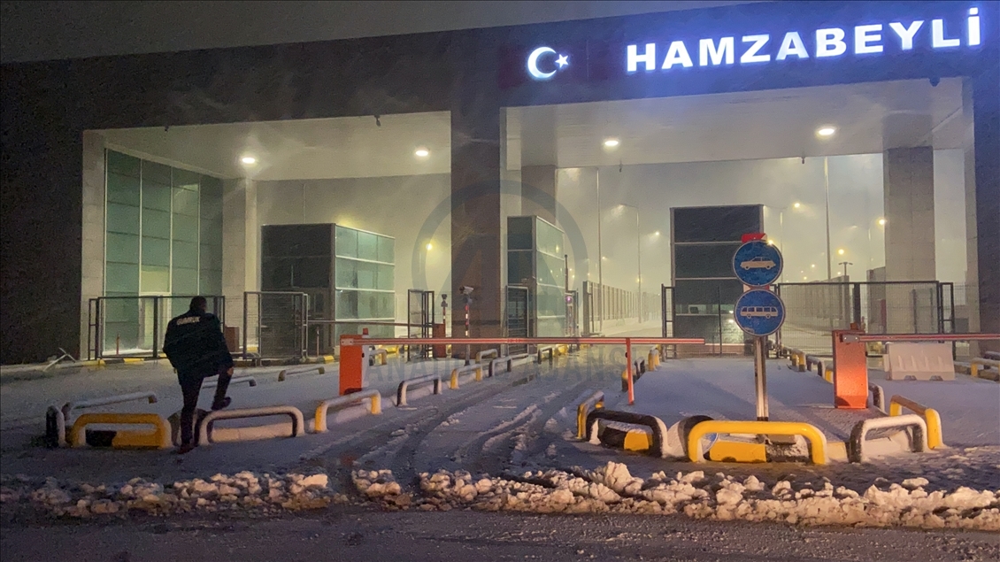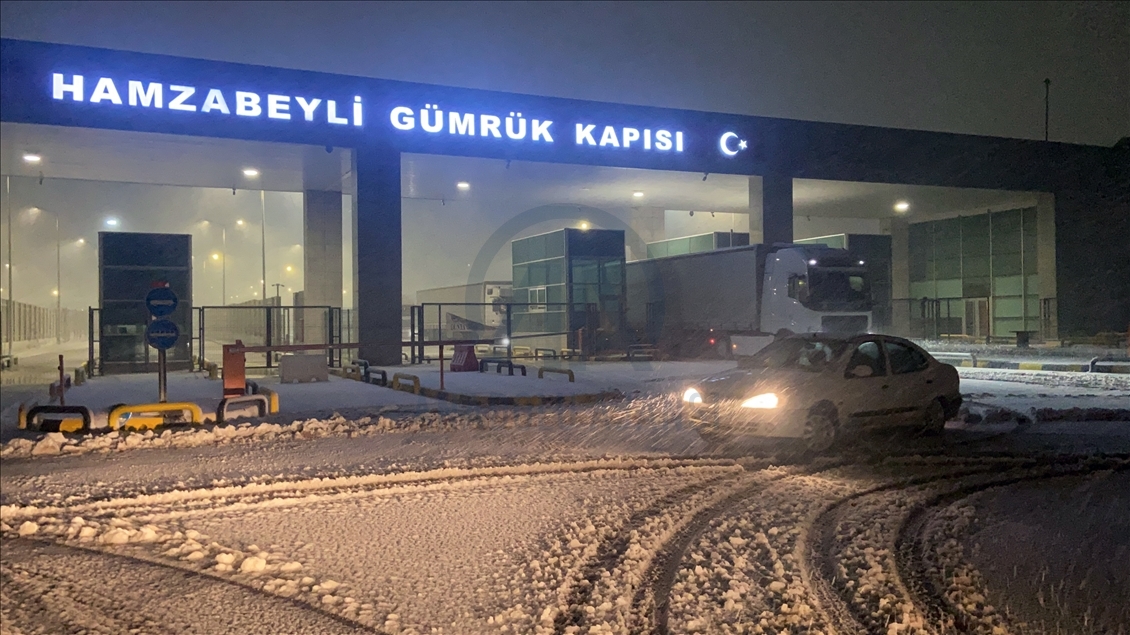 Hava sıcaklığının düşmesiyle sağanağın kara dönüştü kentte Hamzabeyli Sınır Kapısı'nda kar yağışı etkili oldu. ( Hakan Mehmet Şahin - Anadolu Ajansı )Hakan Mehmet Şahin