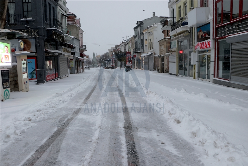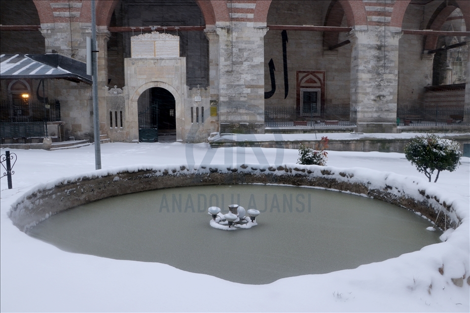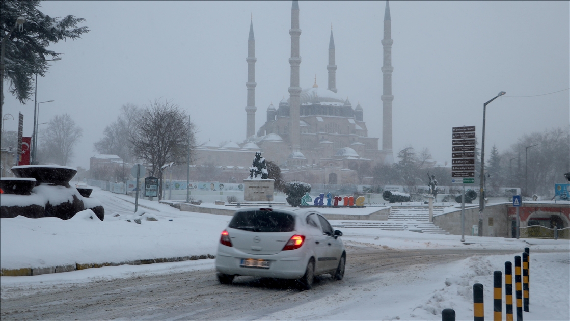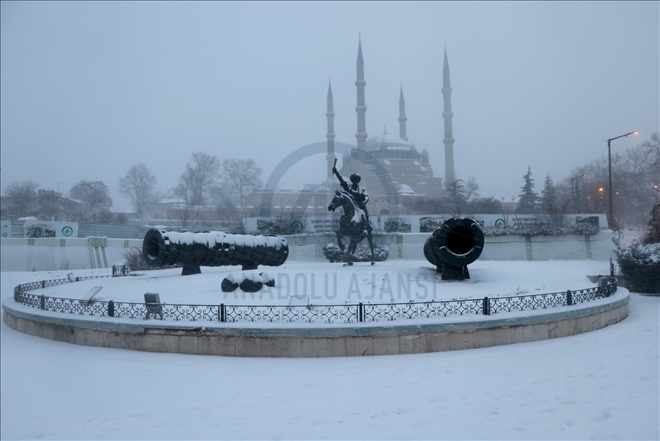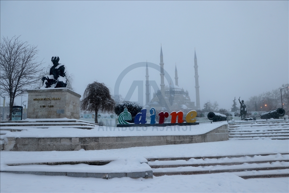 Edirne'de dün akşam saatlerinde başlayan kar yağışı etkisini artırarak devam ediyor. Kar yağışı nedeniyle kent beyaza büründü.