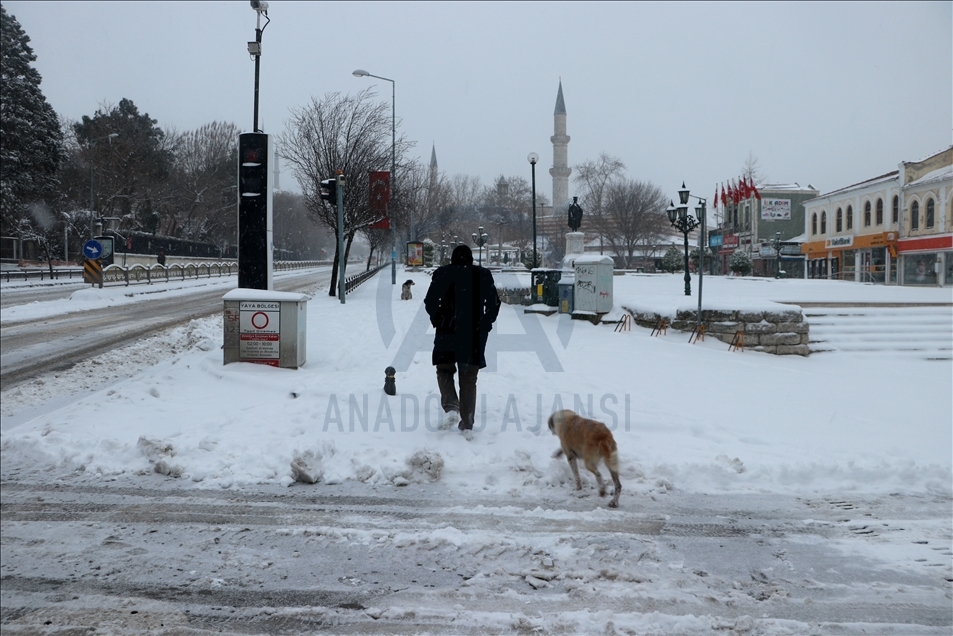 Edirne'de dün akşam saatlerinde başlayan kar yağışı etkisini artırarak devam ediyor. Kar yağışı nedeniyle kent beyaza büründü. ( Gökhan Zobar - Anadolu Ajansı )Gökhan Zobar