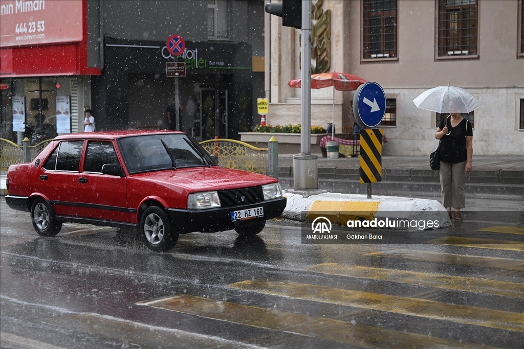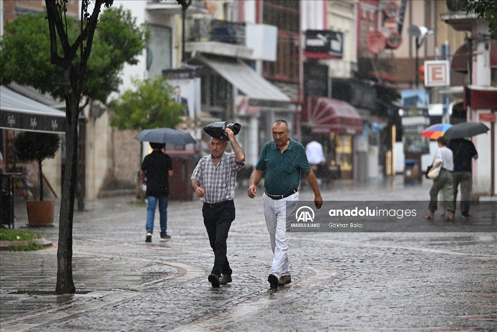 Edirne'de kuvvetli sağanak, uzun zamandır bunaltan sıcaklıklar nedeniyle zorluk yaşan kent sakinlerine rahat nefes aldırdı. ( Doğukan Vurgun - Anadolu Ajansı )Doğukan Vurgun