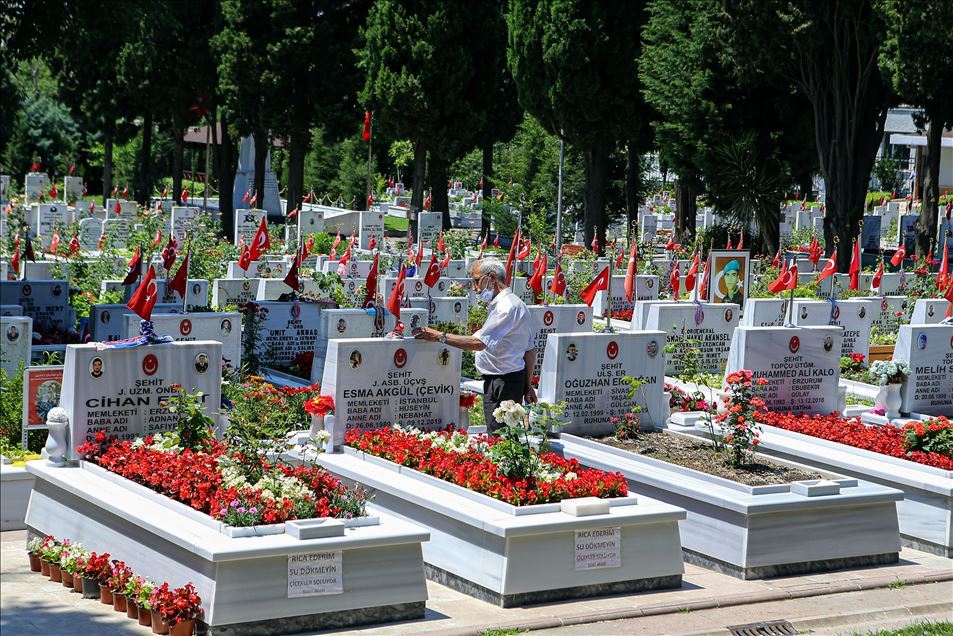Edirnekapı Şehitliği'nde Babalar Günü hüznü hakim. Sabahın erken saatlerinden itibaren şehitliğe ziyarete gelen şehit yakınları dualar ve Kur'an-ı Kerim okudu.