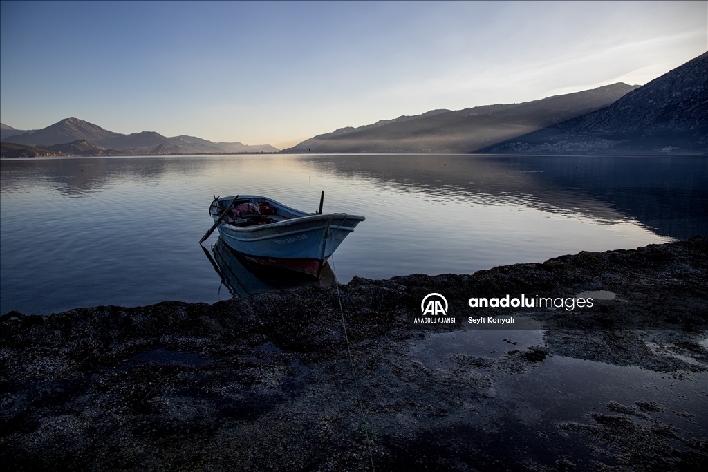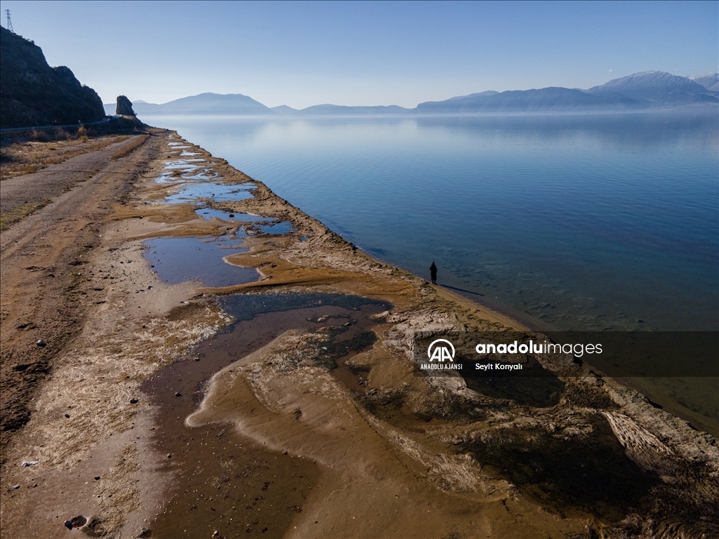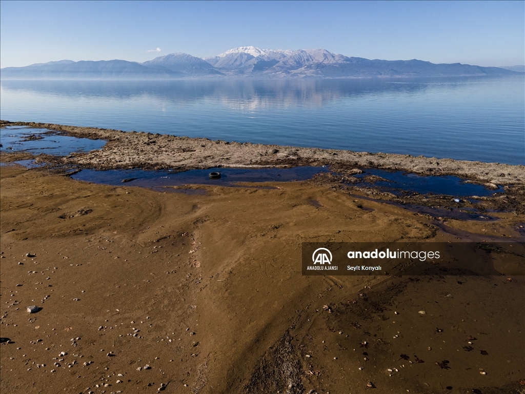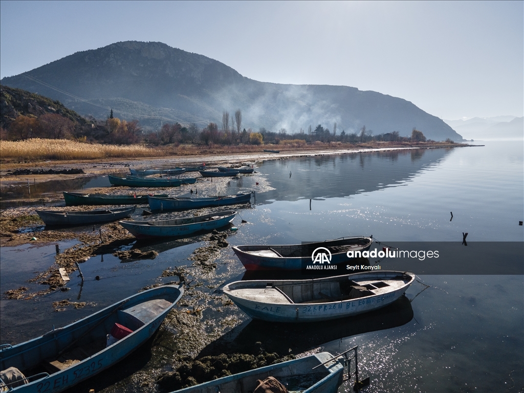 Küresel ısınma ve yağışların azalması nedeniyle Eğirdir gölünün su seviyesinde azalma meydana geldi. ( Seyit Konyalı - Anadolu Ajansı )