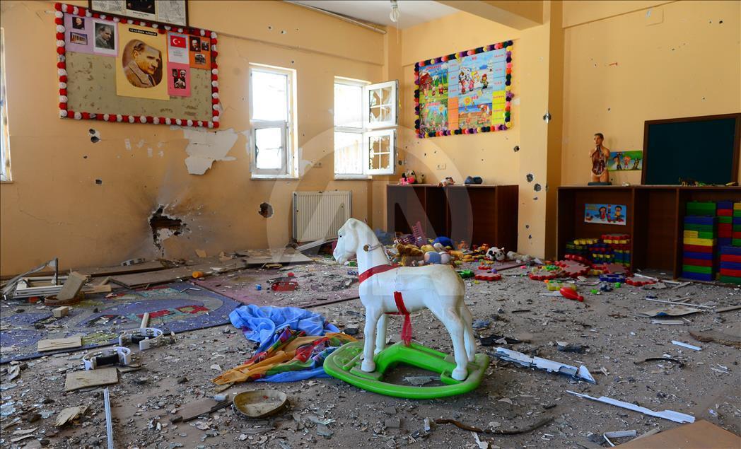 Şırnak'ta terör örgütü PKK mensuplarına yönelik operasyon sürerken, teröristler kent merkezindeki 6 okulu kullanılamaz hale getirdi. Teröristler Sema Cıngıllıoğlu Anaokulu binasına hasar verirken, çocukların oyuncaklarıda tahribattan nasibini aldı. ( Soner Kılınç - Anadolu Ajansı )Soner Kılınç