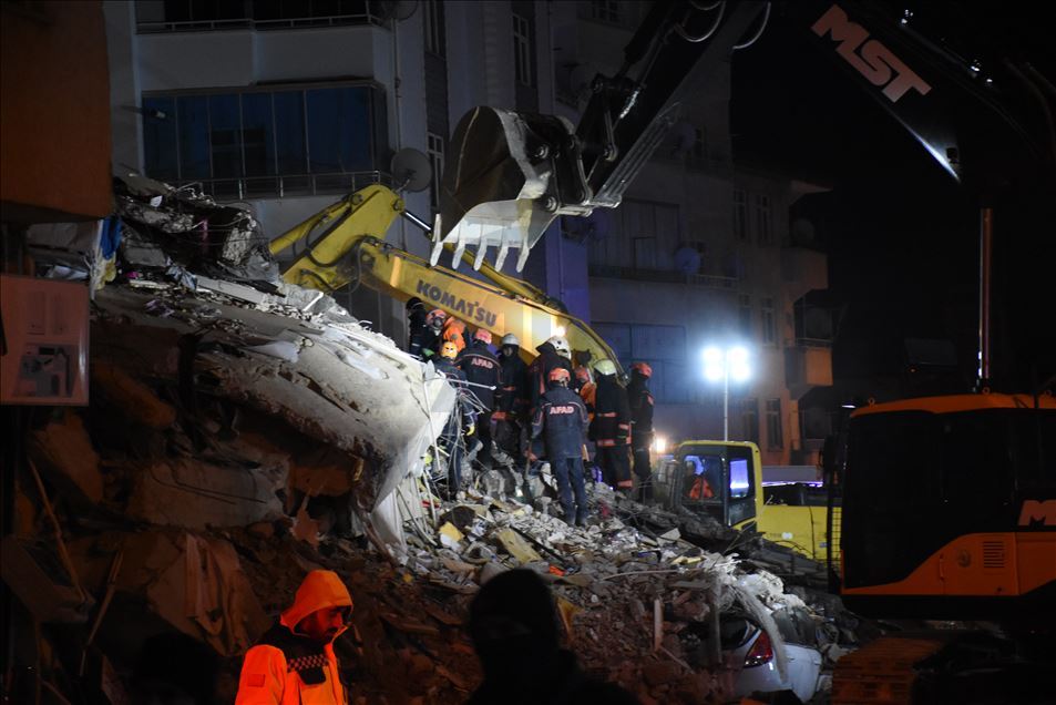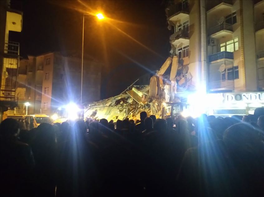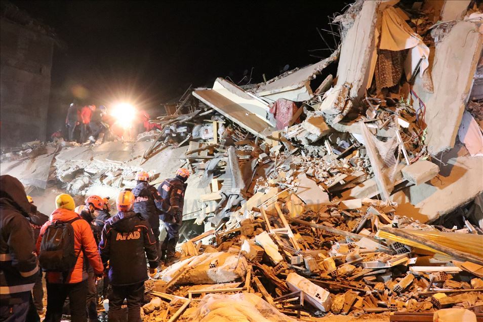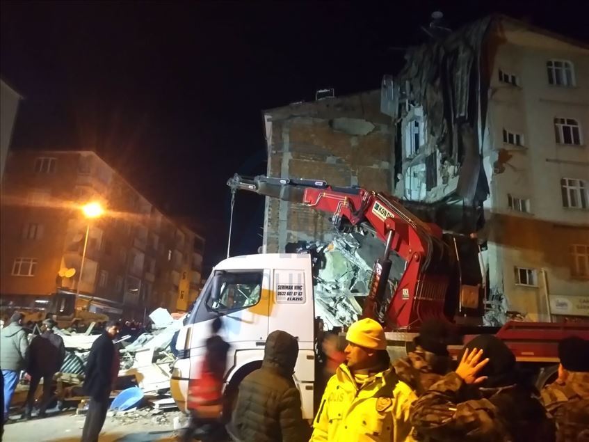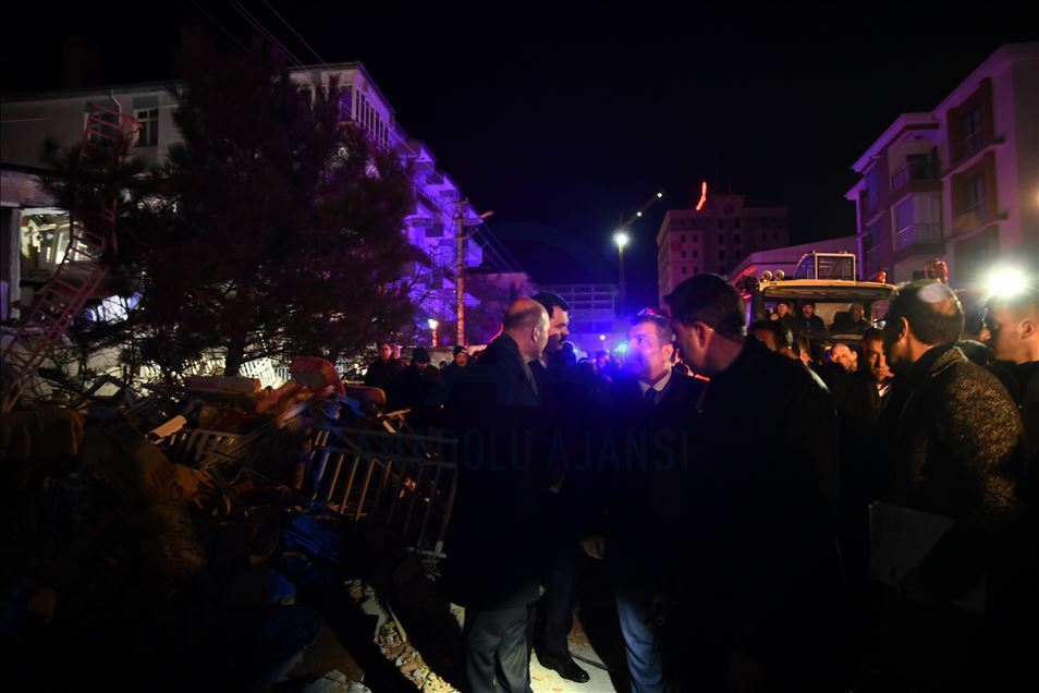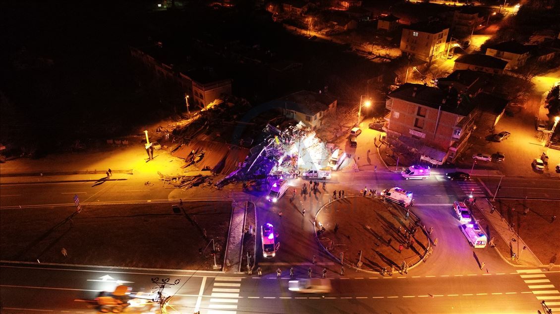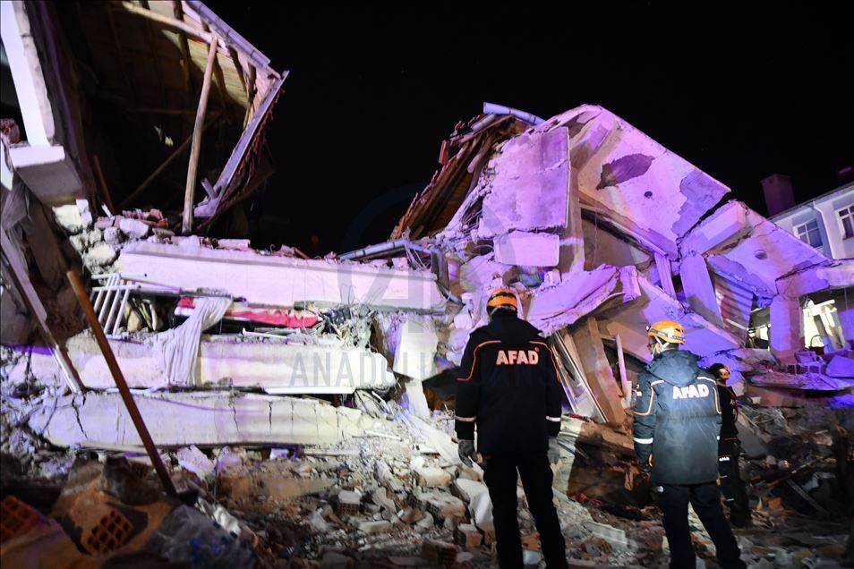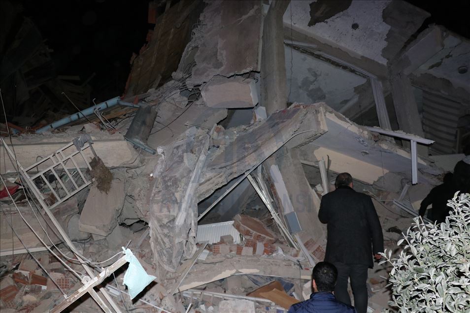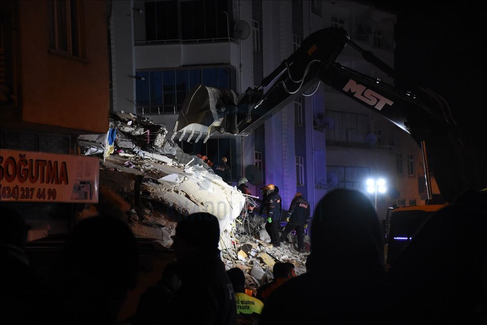 Elazığ'da meydana gelen depremde, Sürsürü Mahallesi'nde yer alan bir apartman yıkıldı. Apartman enkazında arama ve kurtarma çalışmaları başladı. ( İsmail Şen - Anadolu Ajansı )İsmail Şen