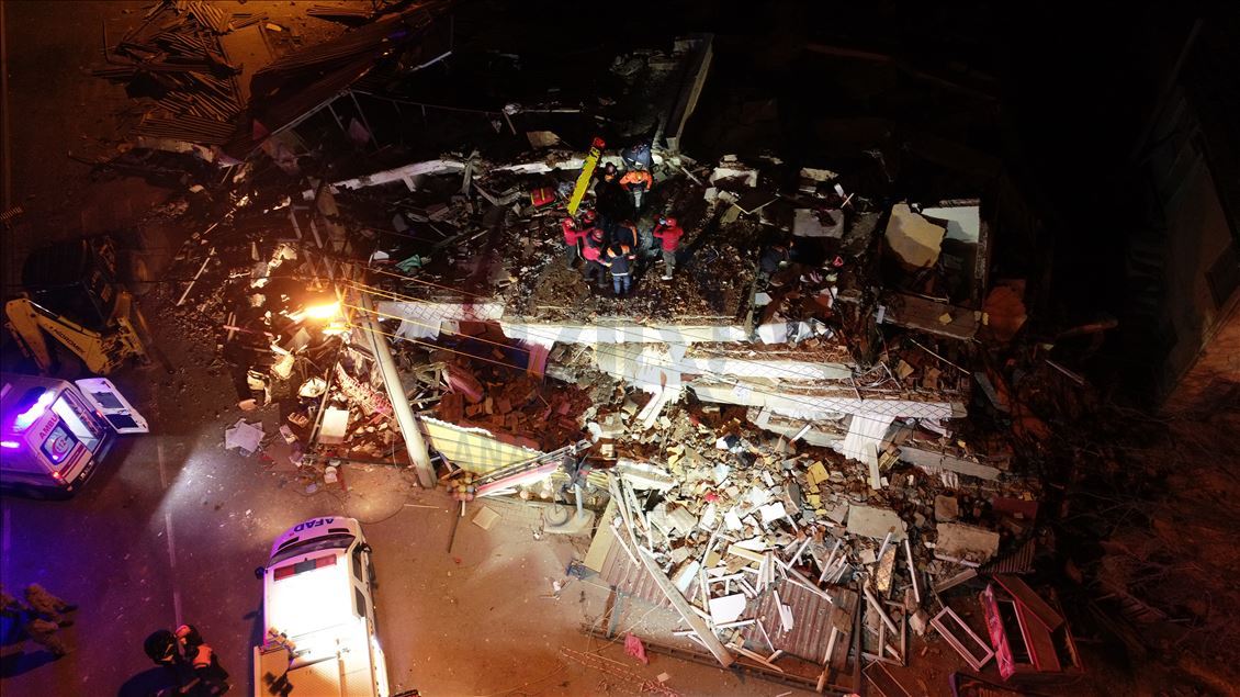 Elazığ'da meydana gelen depremde Mustafapaşa Mahallesi'nde bulunan 2 binada çökme meydana geldi. Çöken binalarda arama kurtarma çalışması yapılıyor. ( İsmail Şen - Anadolu Ajansı )İsmail Şen