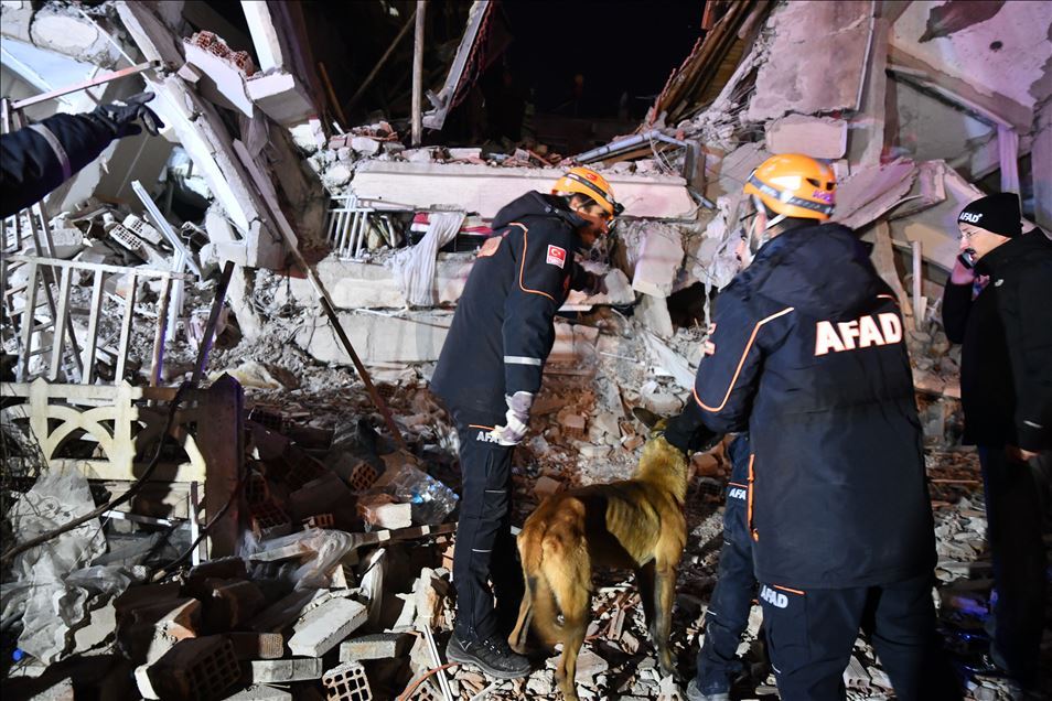 Elazığ'da meydana gelen deprem sonrası yıkılan binalarda arama kurtarma çalışması devam ediyor. ( Kerem Kocalar - Anadolu Ajansı )Kerem Kocalar