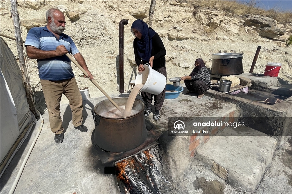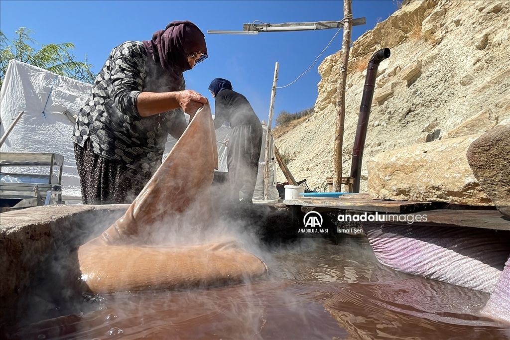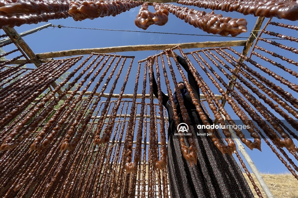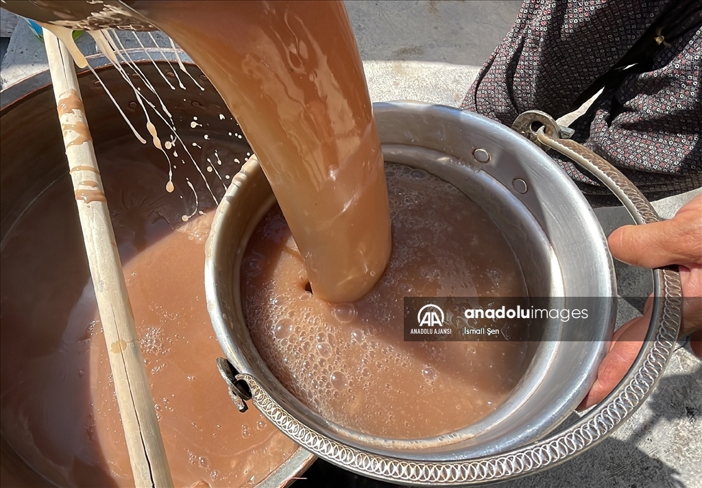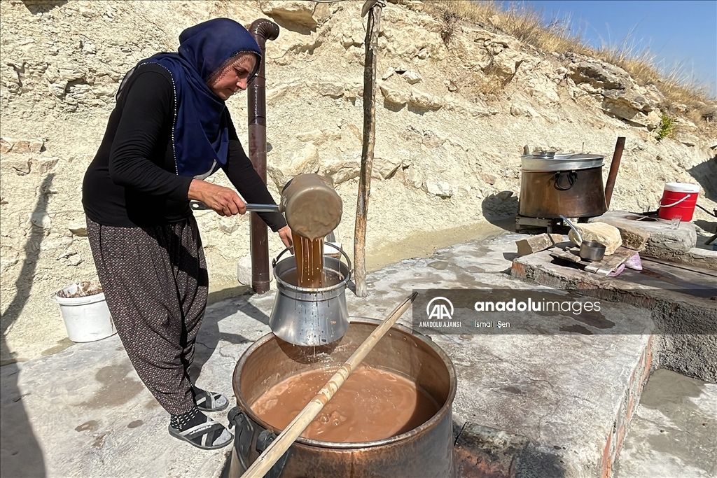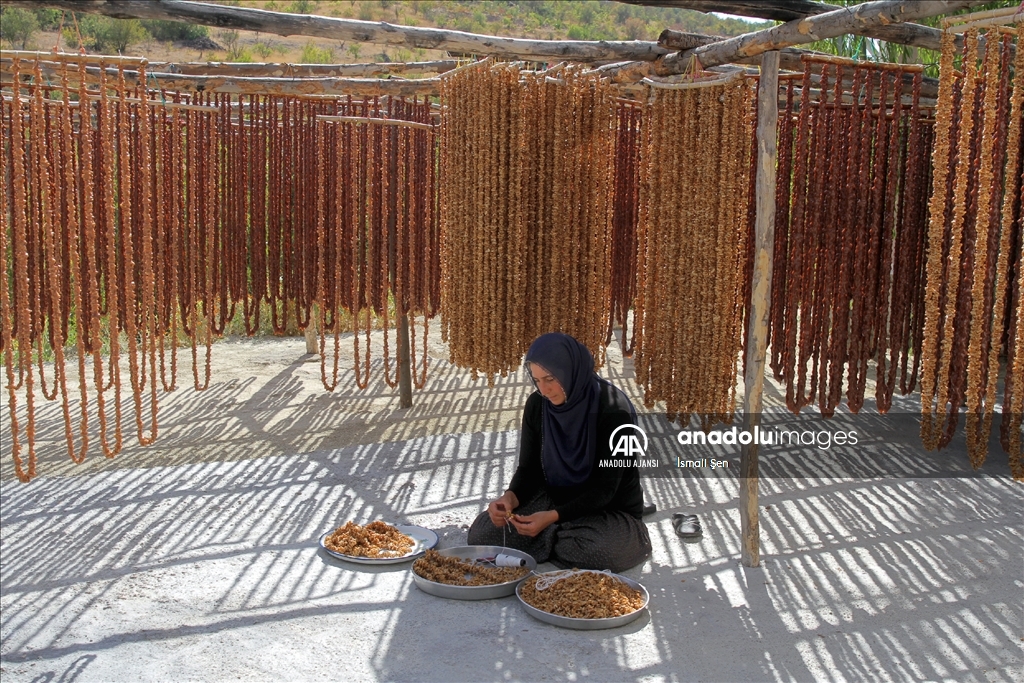 Elazığ'da yöreye özgü, kışın vazgeçilmez lezzetleri arasından yer alan orciğin (cevizli sucuk) yapımı için kazanlar kaynamaya başladı.