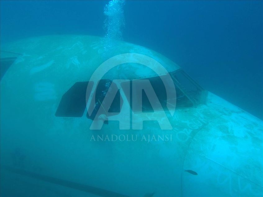 Saros Körfezi'nde batırılan Airbus A330 tipi emekli uçak dalgıçların bölgeye ilgisini artırdı. ( Cihan Demirci - Anadolu Ajansı )Cihan Demirci