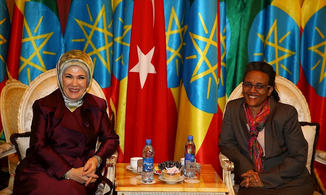 Cumhurbaşkanı Recep Tayyip Erdoğan'ın eşi Emine Erdoğan, Etiyopya Başbakanı Hailemariam Desalegn'in eşi Roman Tesfaye ile görüştü. (Yasin Bülbül-Cumhurbaşkanlığı - Anadolu Ajansı)Yasin Bülbül-Cumhurbaşkanlığı