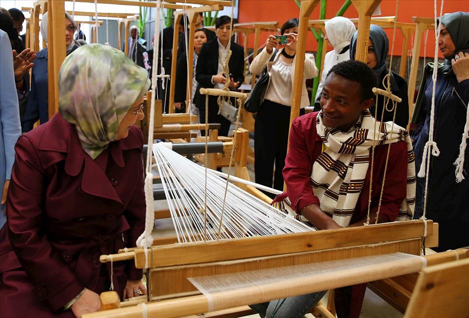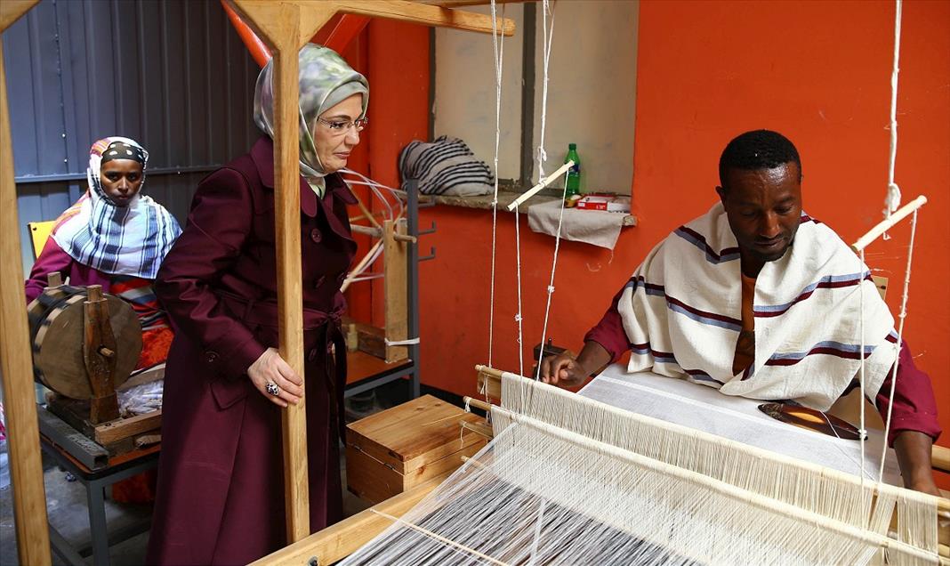 Cumhurbaşkanı Recep Tayyip Erdoğan'ın eşi Emine Erdoğan, Addis ababa ziyaretinde yöresel ürünlerin yapıldığı bir atölyeyi ziyaret etti. Emine Erdoğan'a Etiyopya Başbakanı Desalegn'ın eşi Roman Tesfaye de (sağda) eşlik etti. (Yasin Bülbül-Cumhurbaşkanlığı - Anadolu Ajansı)Yasin Bülbül-Cumhurbaşkanlığı