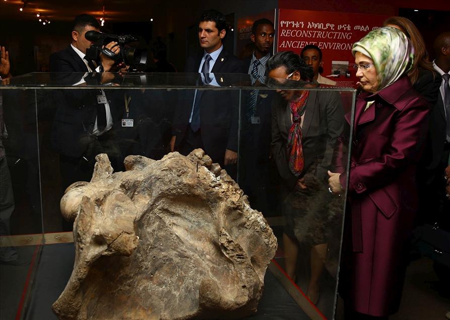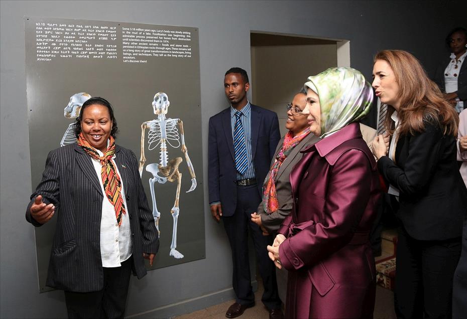 Cumhurbaşkanı Recep Tayyip Erdoğan'ın eşi Emine Erdoğan, Afrika Boynuzu ülkelerini kapsayan resmi ziyaretin ilk durağı olan Etiyopya'nın başkenti Addis Ababa'da Ulusal Müze'yi ziyaret etti. (Orhan Karslı - Anadolu Ajansı)Orhan Karslı
