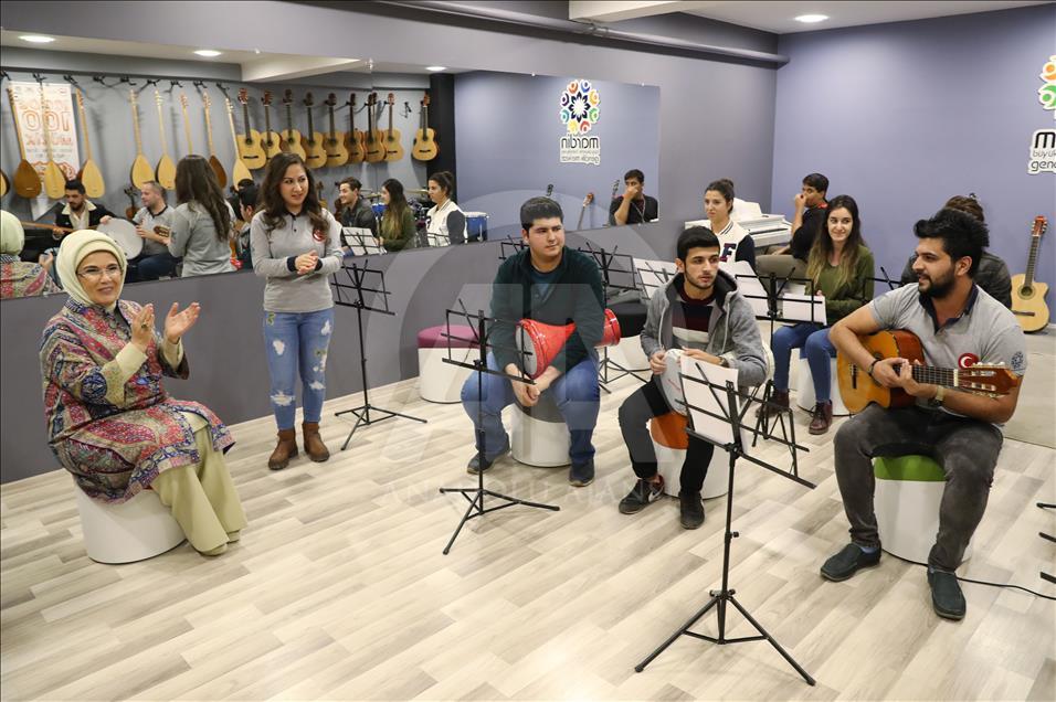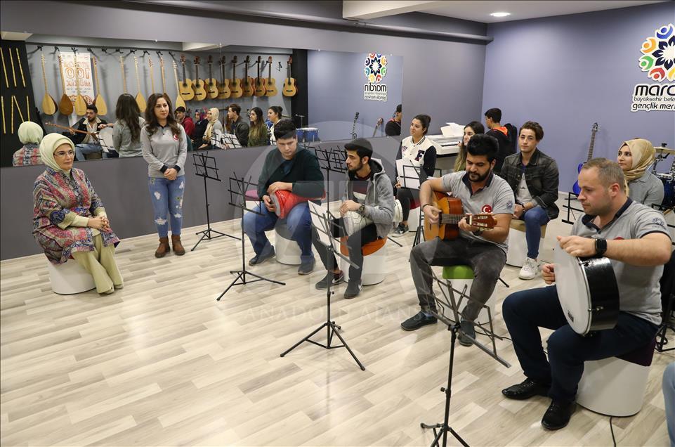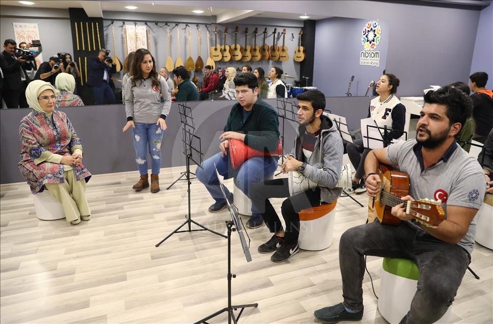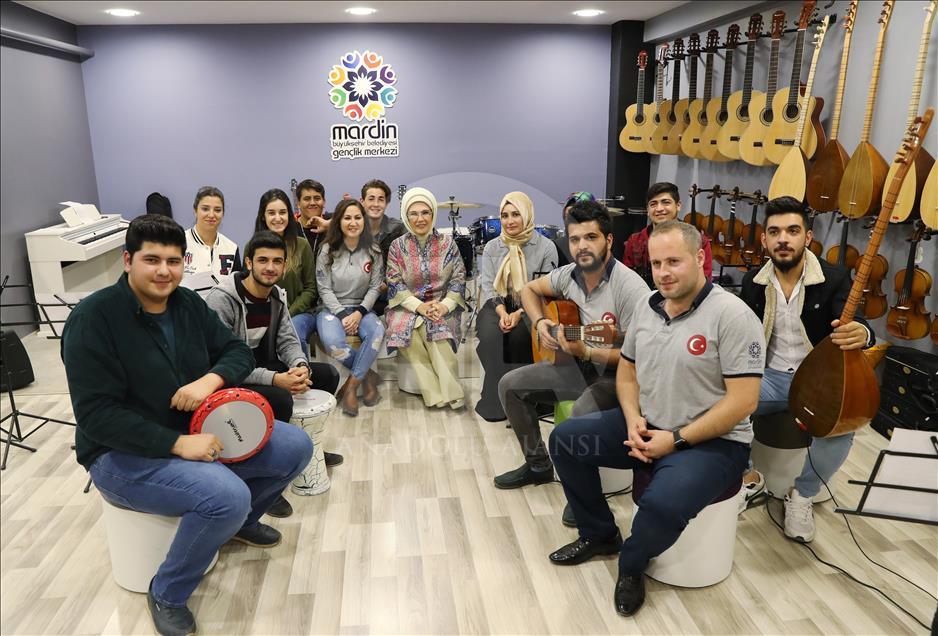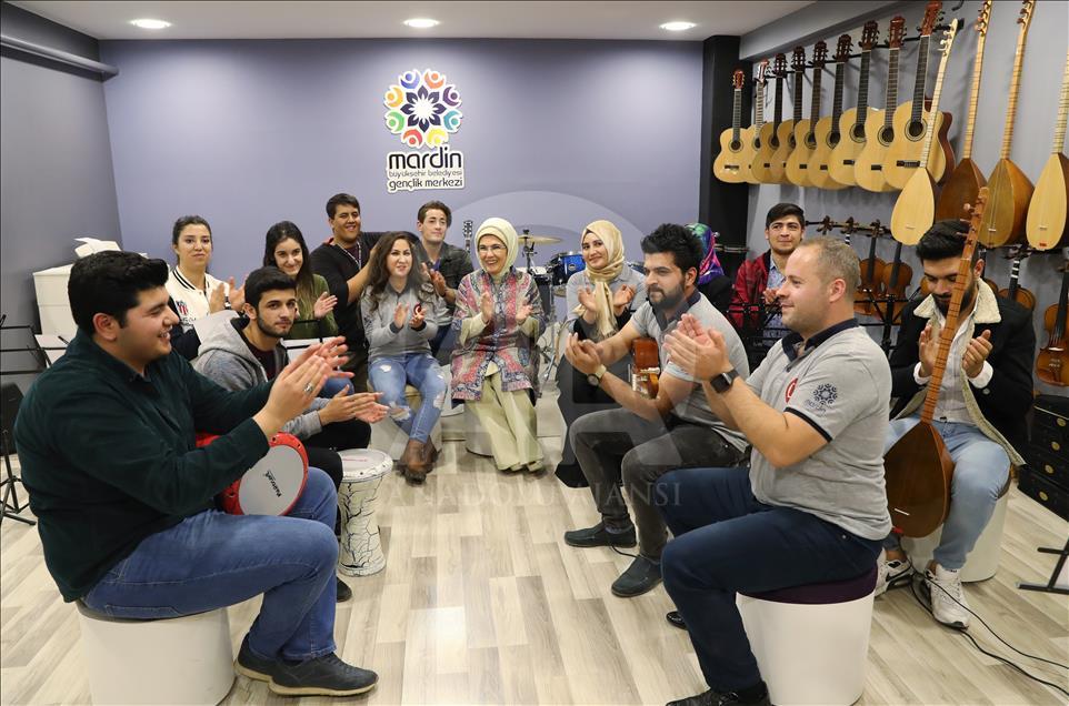 Türkiye Cumhurbaşkanı Recep Tayyip Erdoğan'ın eşi Emine Erdoğan, Mardin Büyükşehir Belediyesi Gençlik Merkezi'nde gençlerle bir araya geldi.