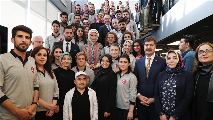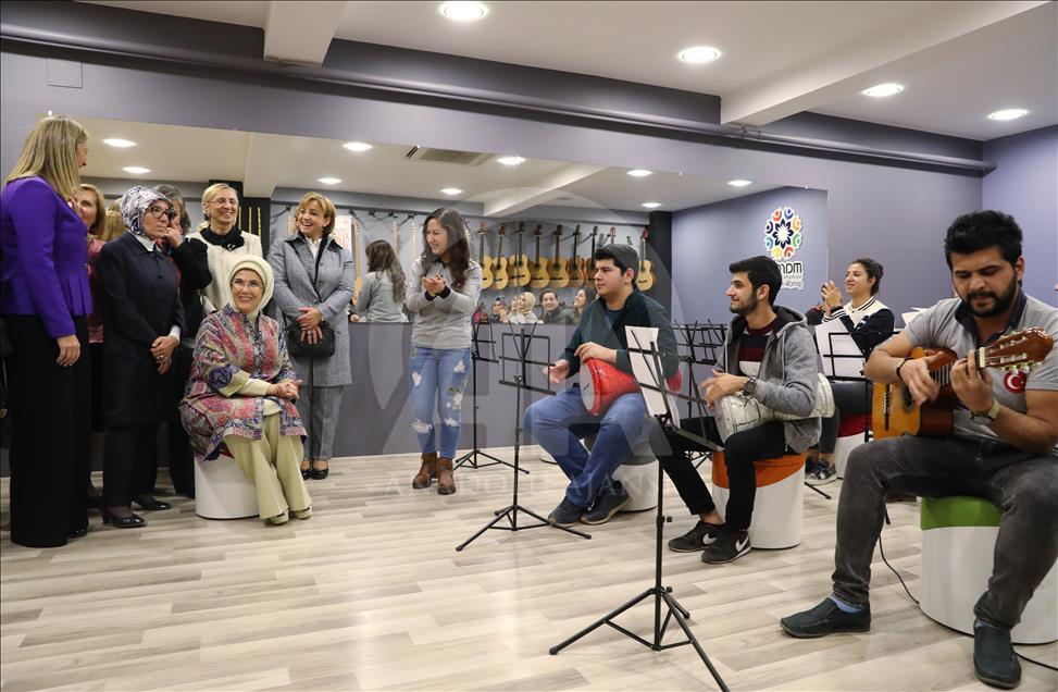 Türkiye Cumhurbaşkanı Recep Tayyip Erdoğan'ın eşi Emine Erdoğan, Mardin Büyükşehir Belediyesi Gençlik Merkezi'nde gençlerle bir araya geldi. ( Cem Öksüz - Anadolu Ajansı )Cem Öksüz