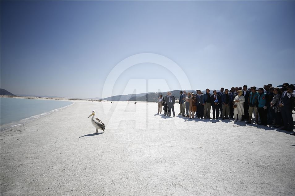 Türkiye Cumhurbaşkanı Recep Tayyip Erdoğan'ın eşi Emine Erdoğan ve Çevre ve Şehircilik Bakanı Murat Kurum, Burdur'un Yeşilova ilçesinde yer alan Salda Gölü'nde incelemede bulundu, burada yürütülen proje hakkında bilgi aldı. Erdoğan, tedavisi tamamlanan bir pelikanın doğal ortamına bırakılmasına yardım etti. ( Mustafa Çiftçi - Anadolu Ajansı )Mustafa Çiftçi