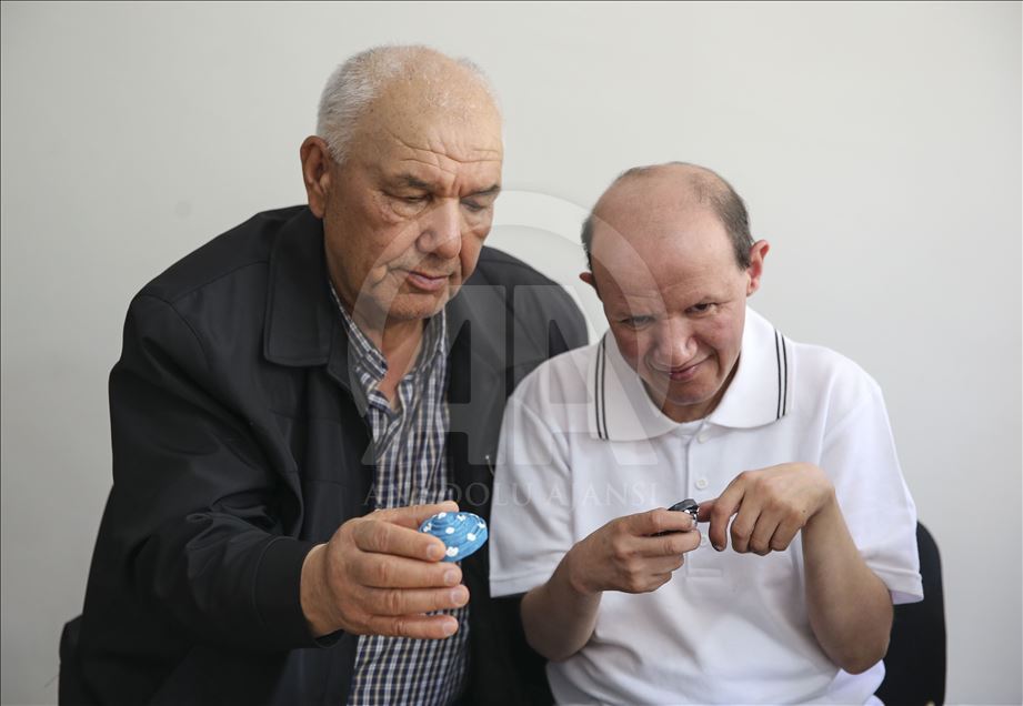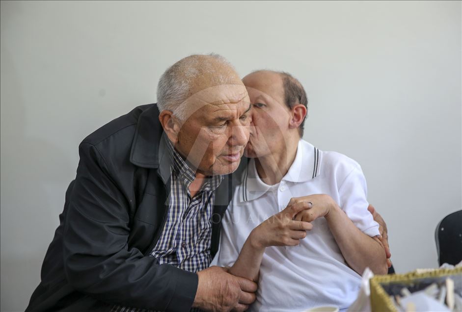 Çocuklarının kimseye muhtaç olmadan hayatlarını sürdürebilmeleri için mücadele eden engelli babaları, onların eğitimden sağlığa her türlü ihtiyaçlarını karşılamak için çaba sarfediyor. Emekli Feridun Durum'un küçük yaşta geçirdiği ateşli hastalık sonucunda rahatsızlan zihinsel engelli 45 yaşındaki oğlu Oğuz Durum (sol 3) ile her zaman ilgileniyor. ( Muhammed Selim Korkutata - Anadolu Ajansı )Muhammed Selim Korkutata