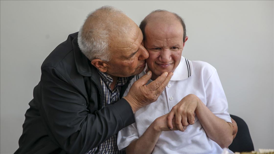 Çocuklarının kimseye muhtaç olmadan hayatlarını sürdürebilmeleri için mücadele eden engelli babaları, onların eğitimden sağlığa her türlü ihtiyaçlarını karşılamak için çaba sarfediyor. Mide kanseri geçiren eşi 2013'te vefat ettikten sonra zihinsel engelli oğluyla hayatı bire bir paylaşmaya başlayan 66 yaşındaki İbrahim Özer (solda), 6 yıldır evin tüm sorumluluğuyla beraber, eşinin yokluğunu hissettirmemek için oğlu Ozan Özer'e (sağda) hem annelik hem babalık yapıyor. Ozan Özer, röportaj sonrası babası İbrahim Özer'e sarıldı.