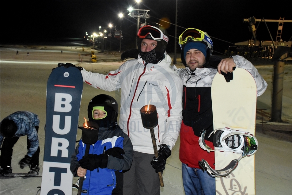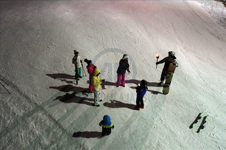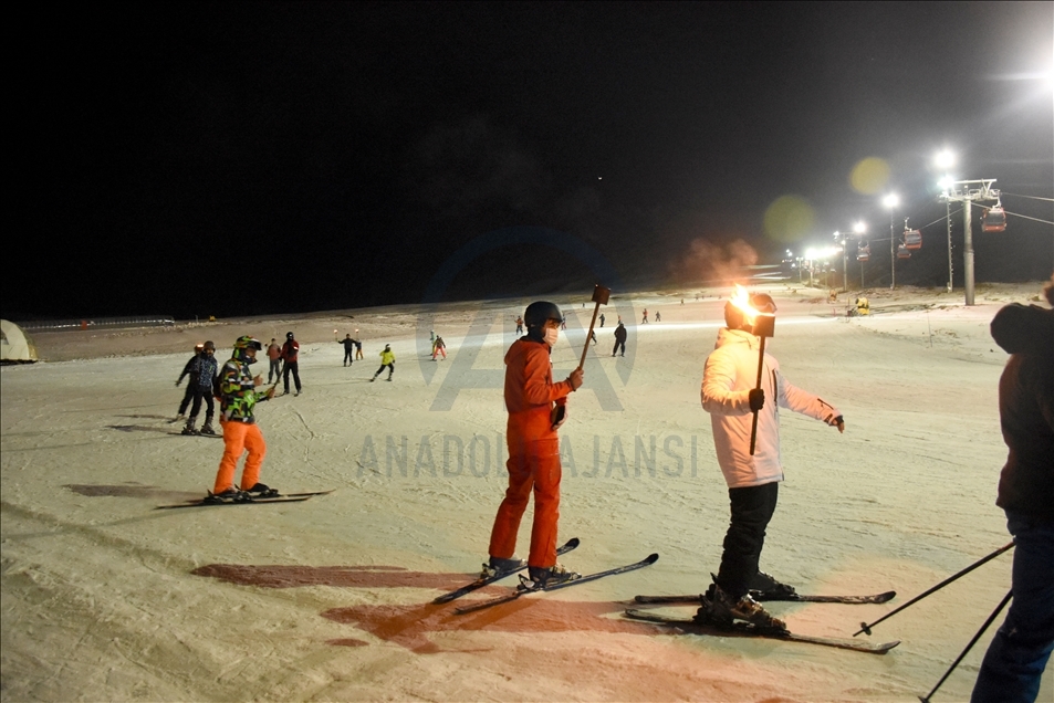 Erciyes'te turistler "gece kayağı" ile eğleniyor