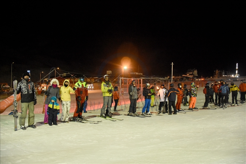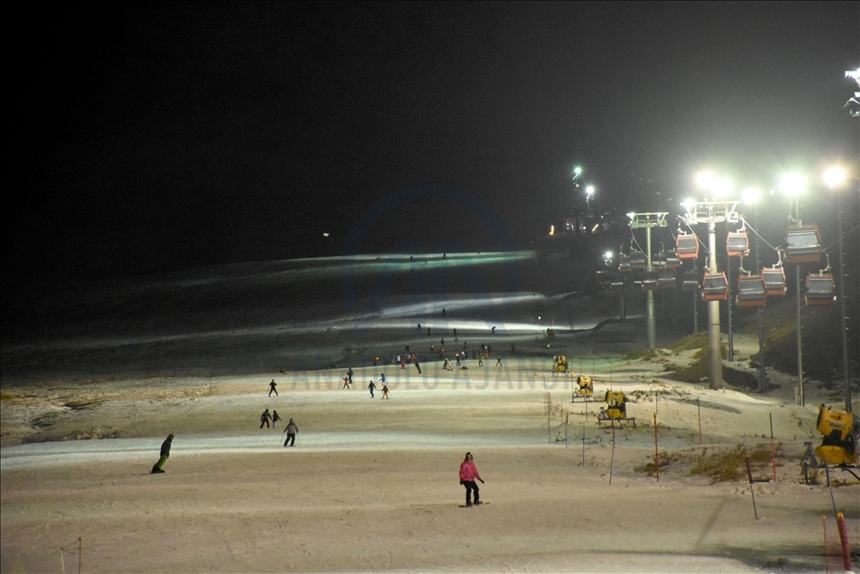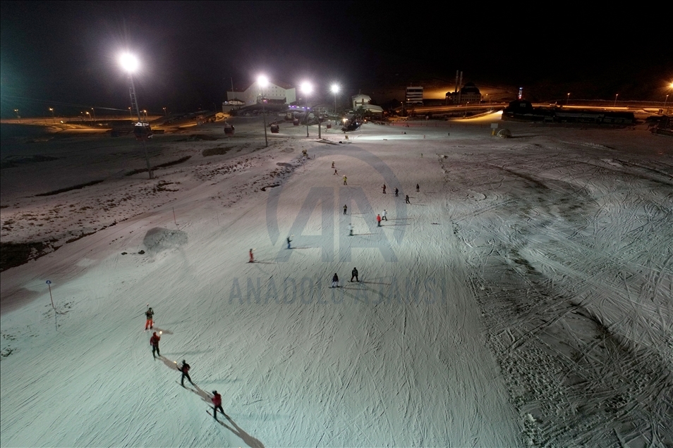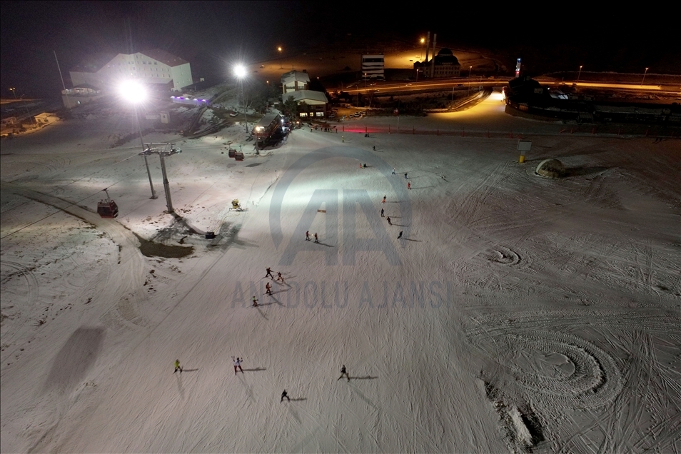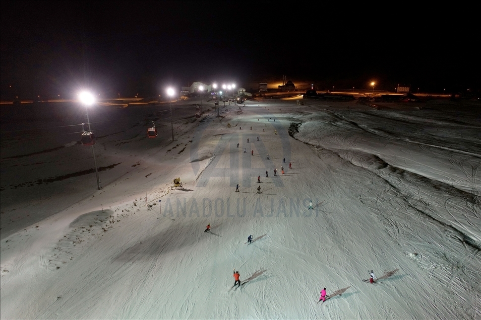 Türkiye'nin en önemli kayak merkezlerinden ve kış sporlarının vazgeçilmezi haline gelen Erciyes, gece kayağı ile yerli ve yabancı misafirlerine farklı heyecan yaşatıyor. ( Müzahim Zahid Tüzün - Anadolu Ajansı )Müzahim Zahid Tüzün