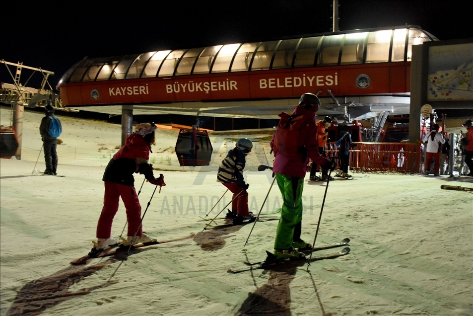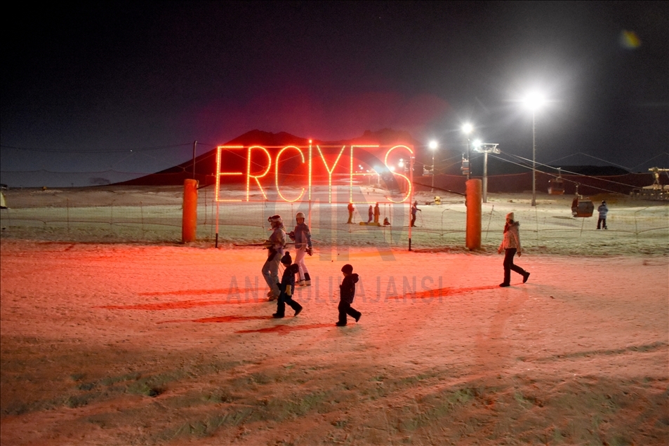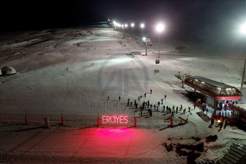 Türkiye'nin en önemli kayak merkezlerinden ve kış sporlarının vazgeçilmezi haline gelen Erciyes, gece kayağı ile yerli ve yabancı misafirlerine farklı heyecan yaşatıyor.