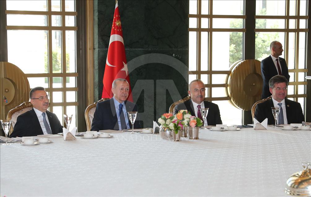 Türkiye Cumhurbaşkanı Recep Tayyip Erdoğan, Cumhurbaşkanlığı Külliyesi'nde 10. Büyükelçiler Konferansı katılımcılarına verilen öğle yemeğine katıldı. Cumhurbaşkanı Erdoğan, yemekte konuşma yaptı.
