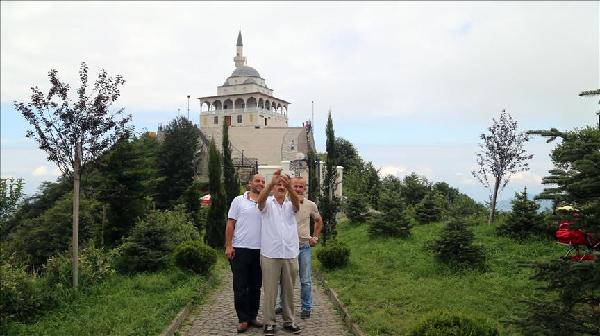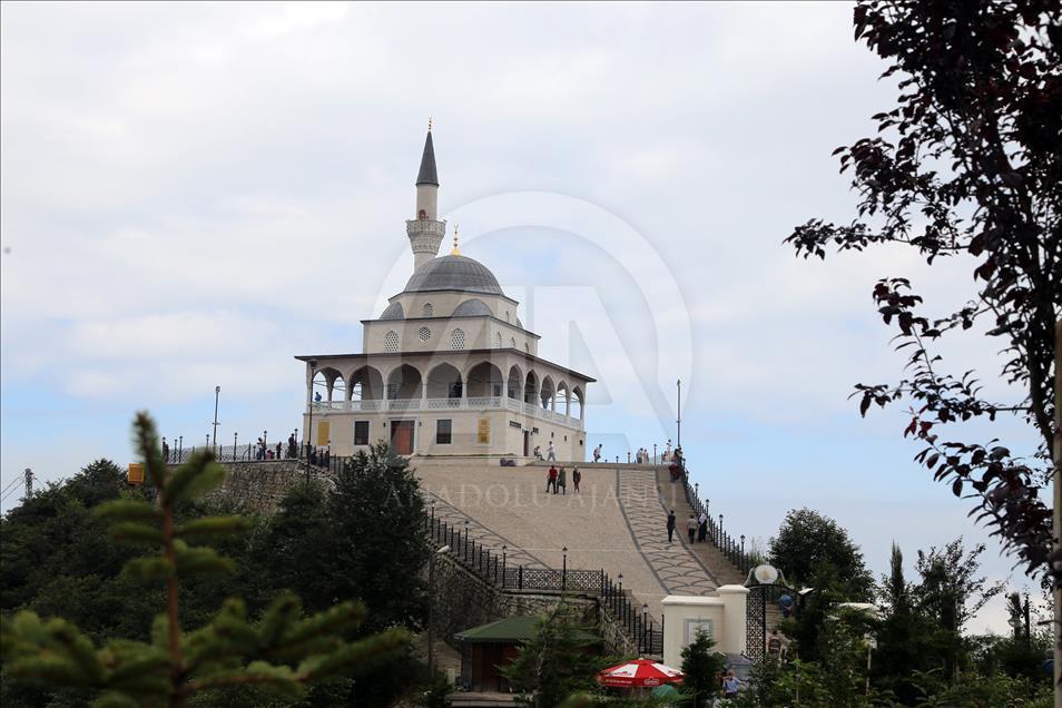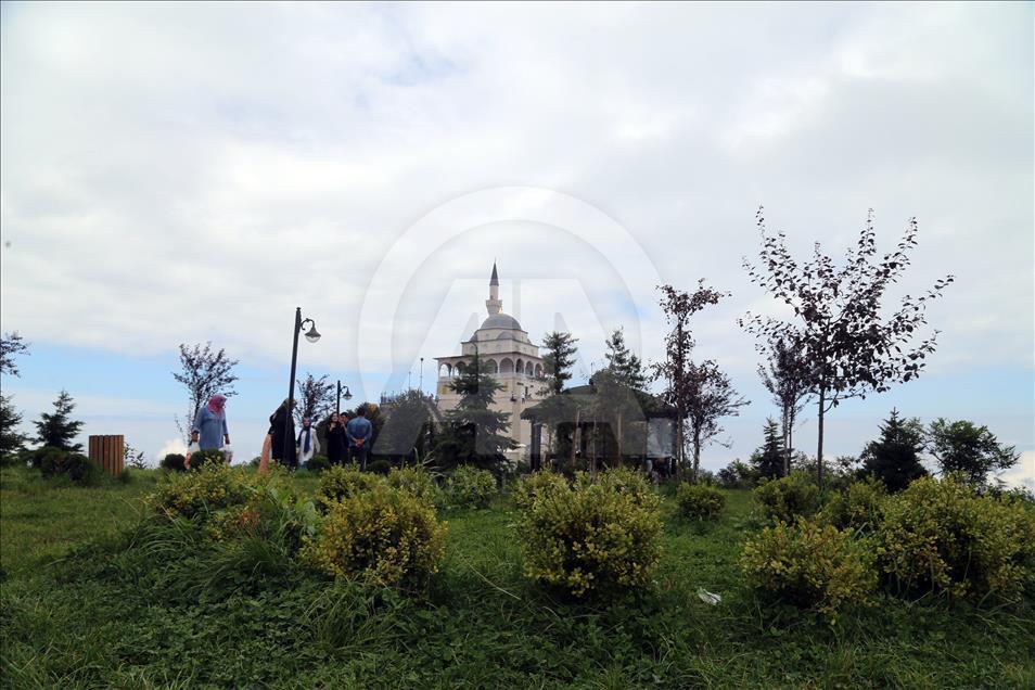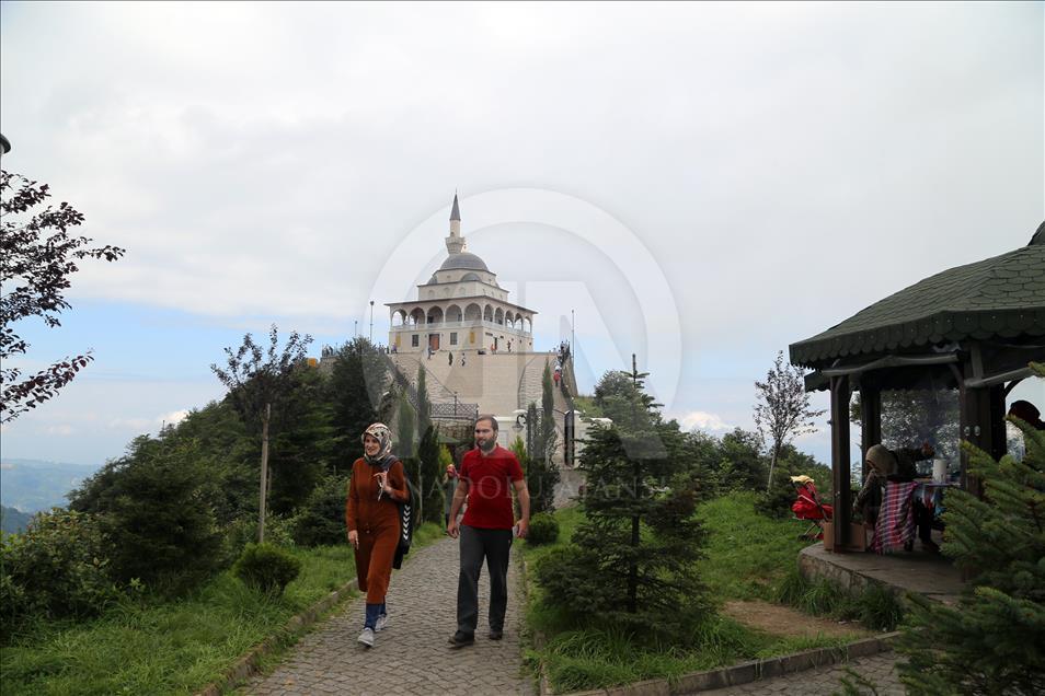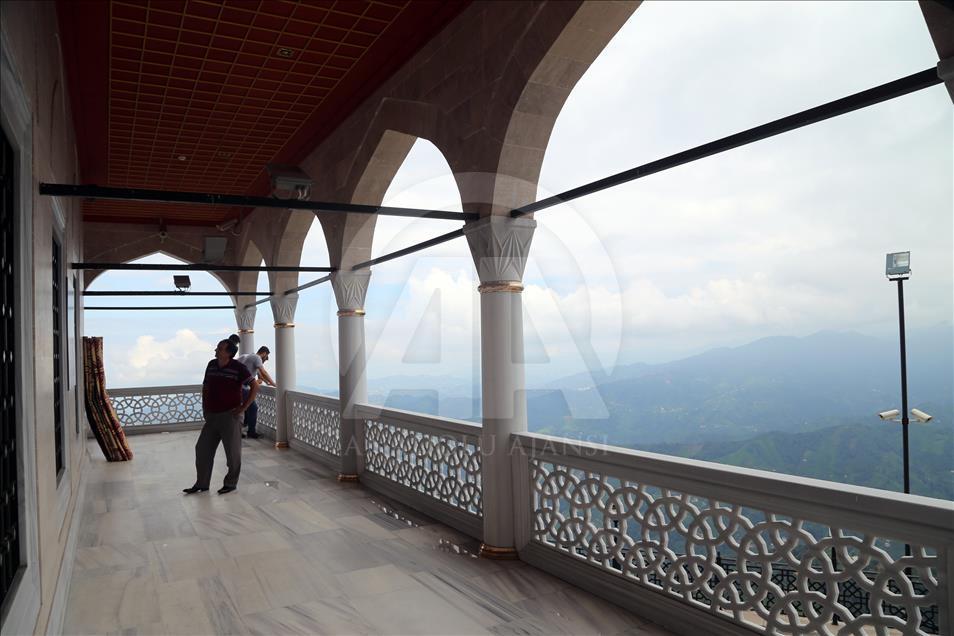 Cumhurbaşkanı Recep Tayyip Erdoğan'ın baba ocağı Rize'nin Güneysu ilçesindeki bin 130 rakımlı Kıble Dağı'nın zirvesine inşa edilen ve manzarasıyla ziyaretçilerin ilgisini çeken Kıble Dağı Hacı Hafız Yusuf Yılmaz Camisi adeta ziyaretçi akınına uğruyor.
