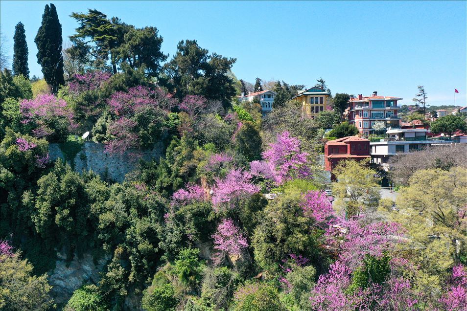 İstanbul Boğazı'na bu günlerde eşsiz bir güzellik katan, baharın habercisi erguvanlar açan çiçekleriyle boğazın iki yakasında adeta görsel şölen sunuyor. ( Muhammed Enes Yıldırım - Anadolu Ajansı )Muhammed Enes Yıldırım