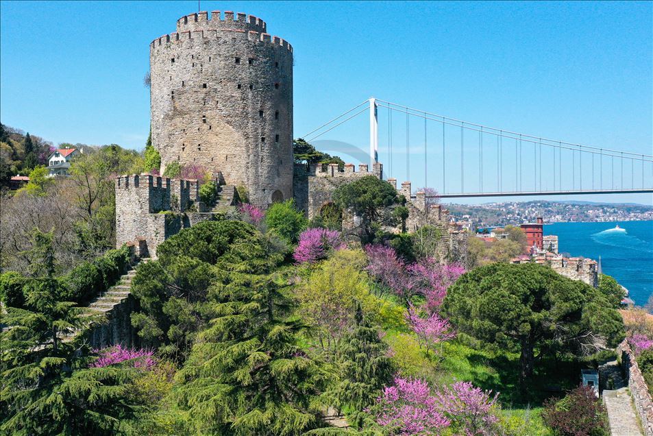 İstanbul Boğazı'na bu günlerde eşsiz bir güzellik katan, baharın habercisi erguvanlar açan çiçekleriyle Rumeli Hisarı ile birlikte görsel şölen sunuyor. ( Muhammed Enes Yıldırım - Anadolu Ajansı )Muhammed Enes Yıldırım