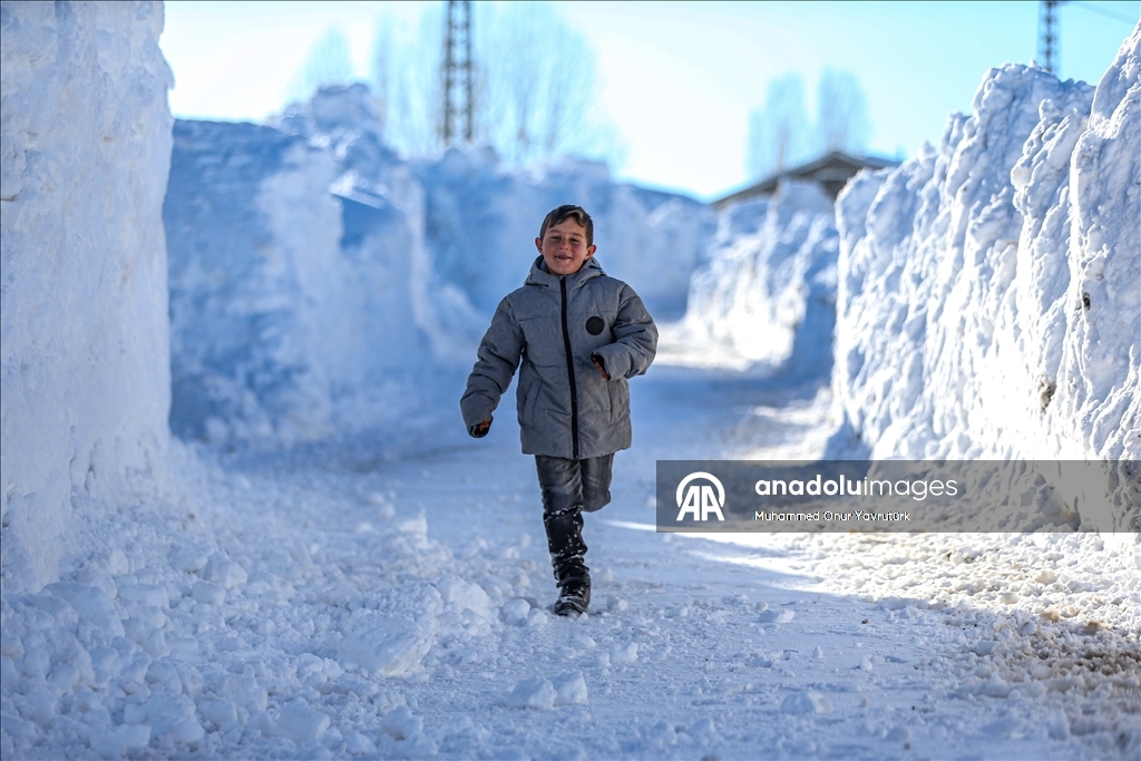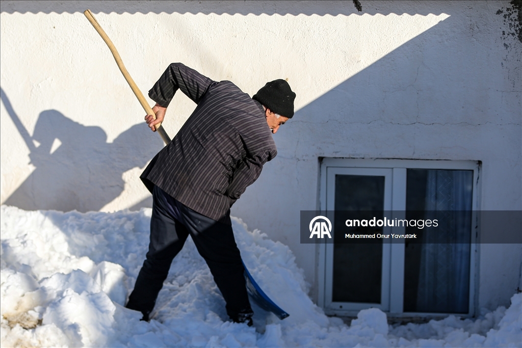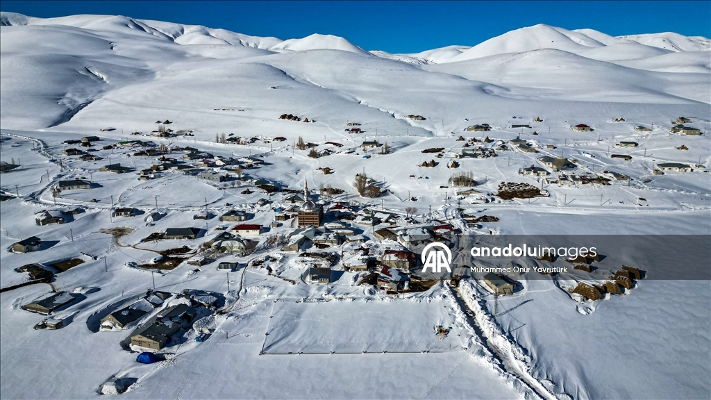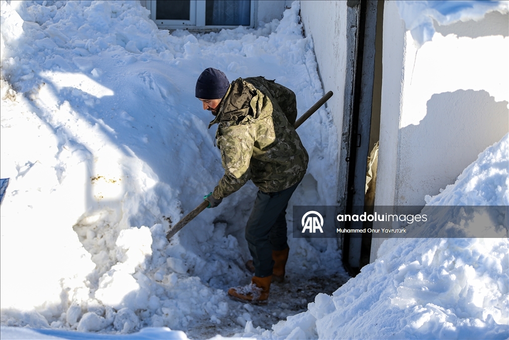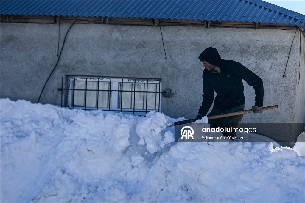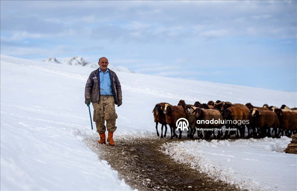 Erzurum'un kırsalındaki besiciler, yer yer 3 metreyi bulan kar ve dondurucu soğuğa karşı mücadele ederek hayvanlarını beslemeye devam ediyor.