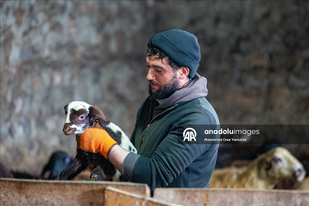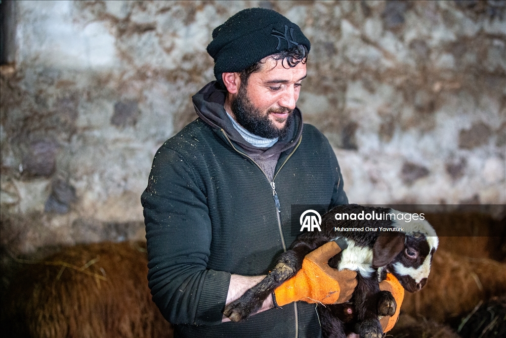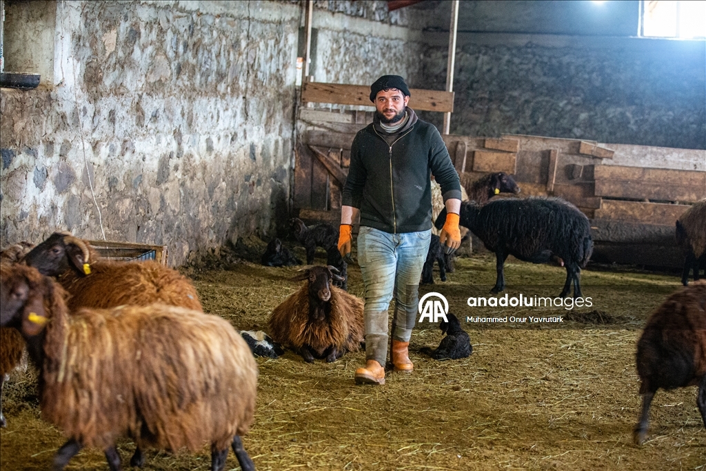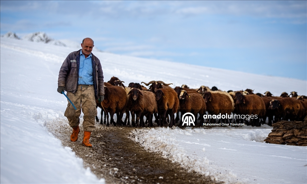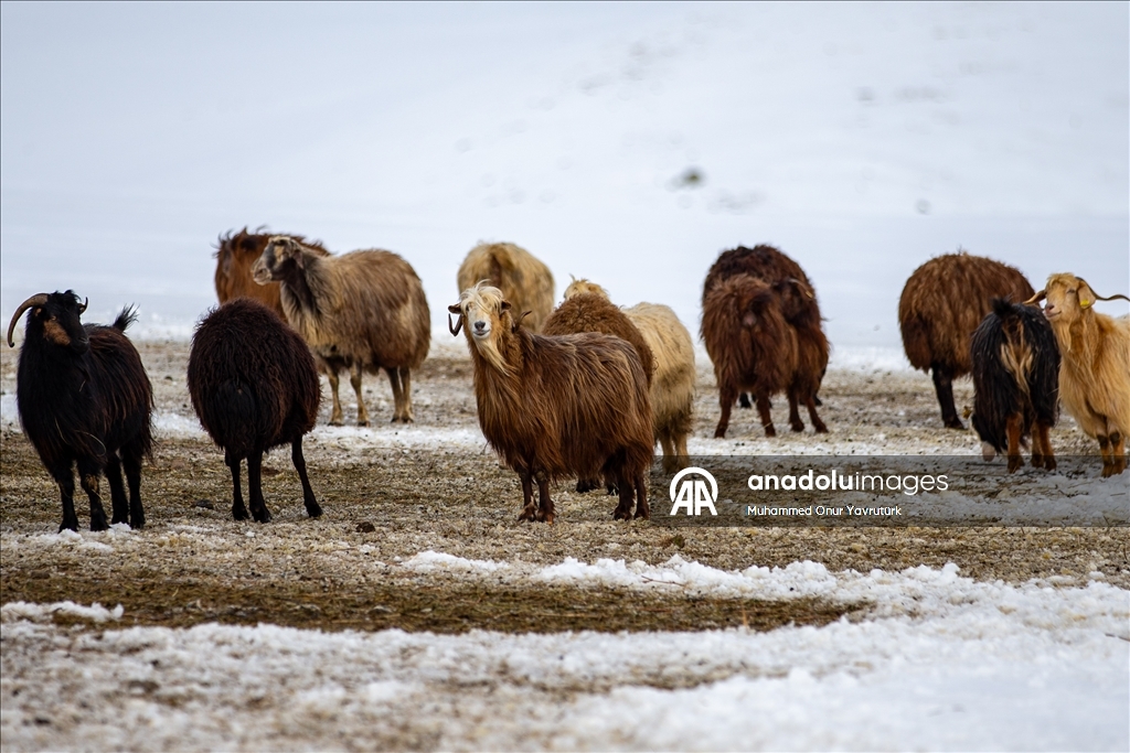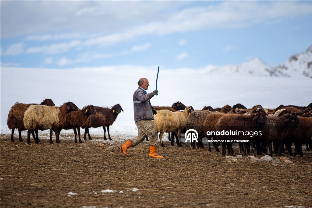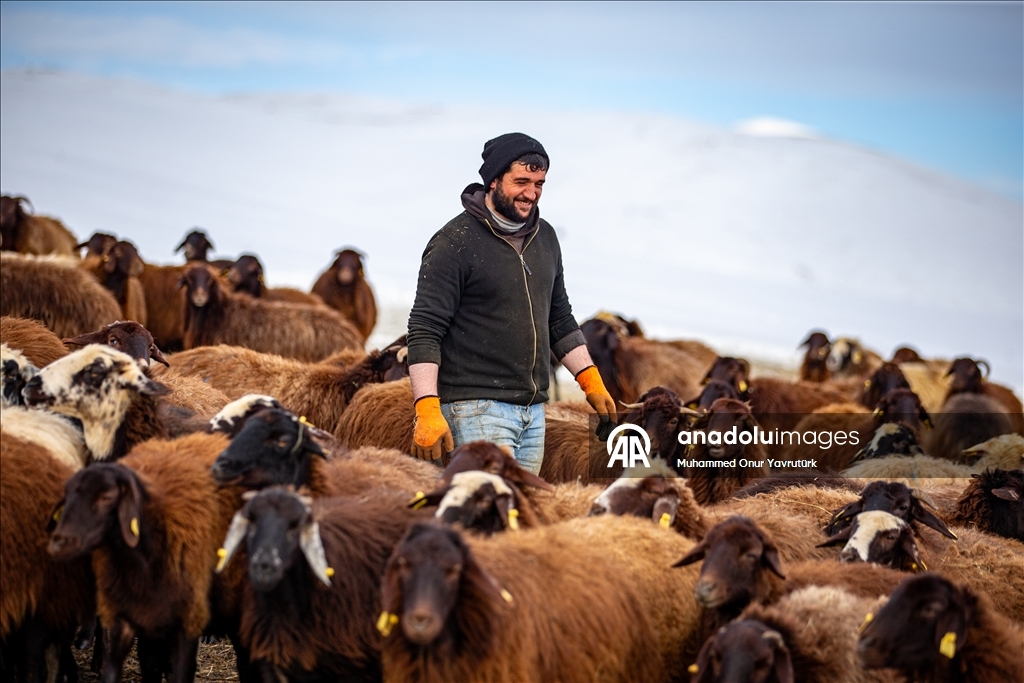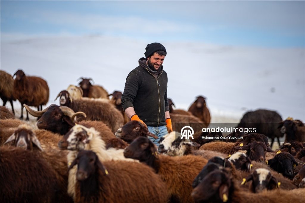 Erzurum'da besiciler kar ve dondurucu soğukla mücadele ediyor