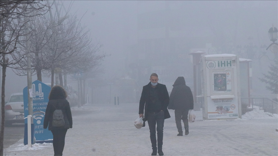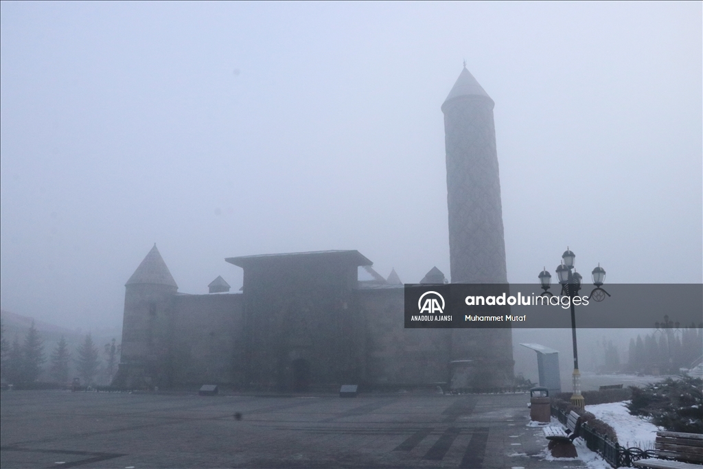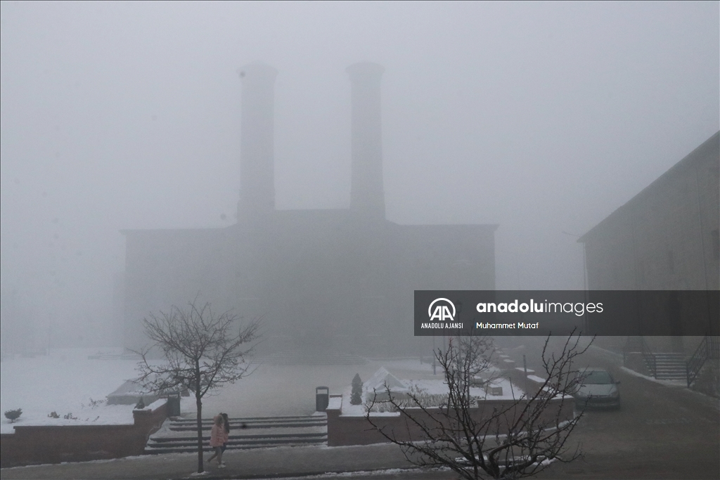 Erzurum şehir merkezinde yoğun sis etkili oldu.