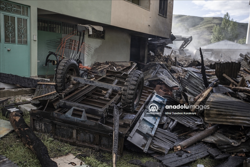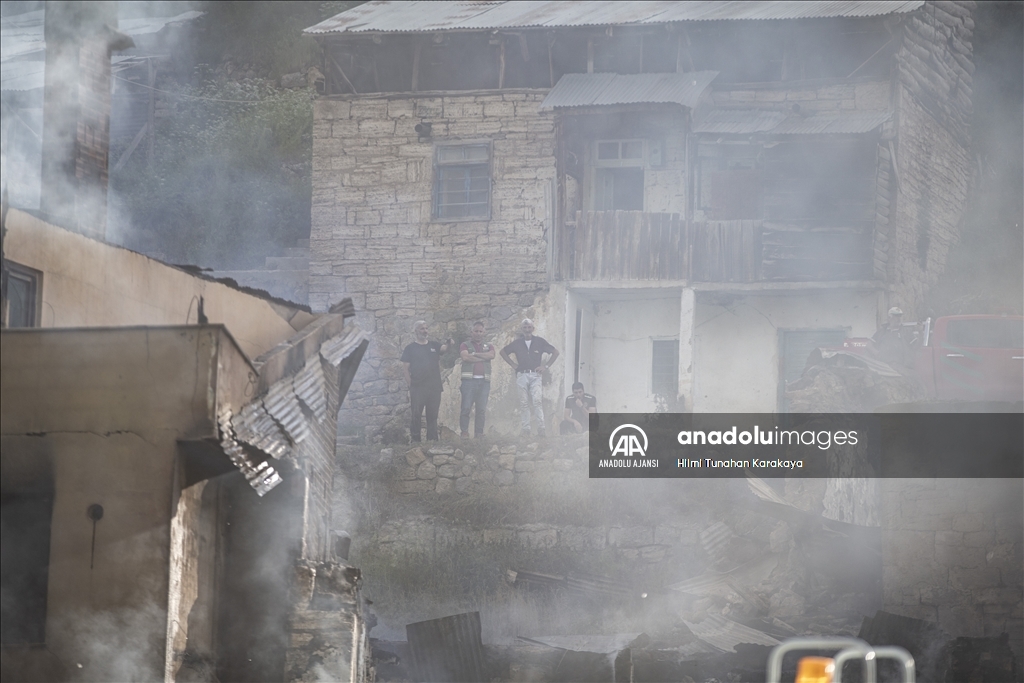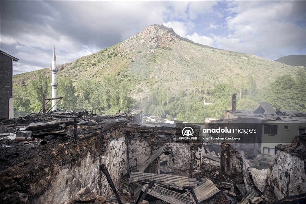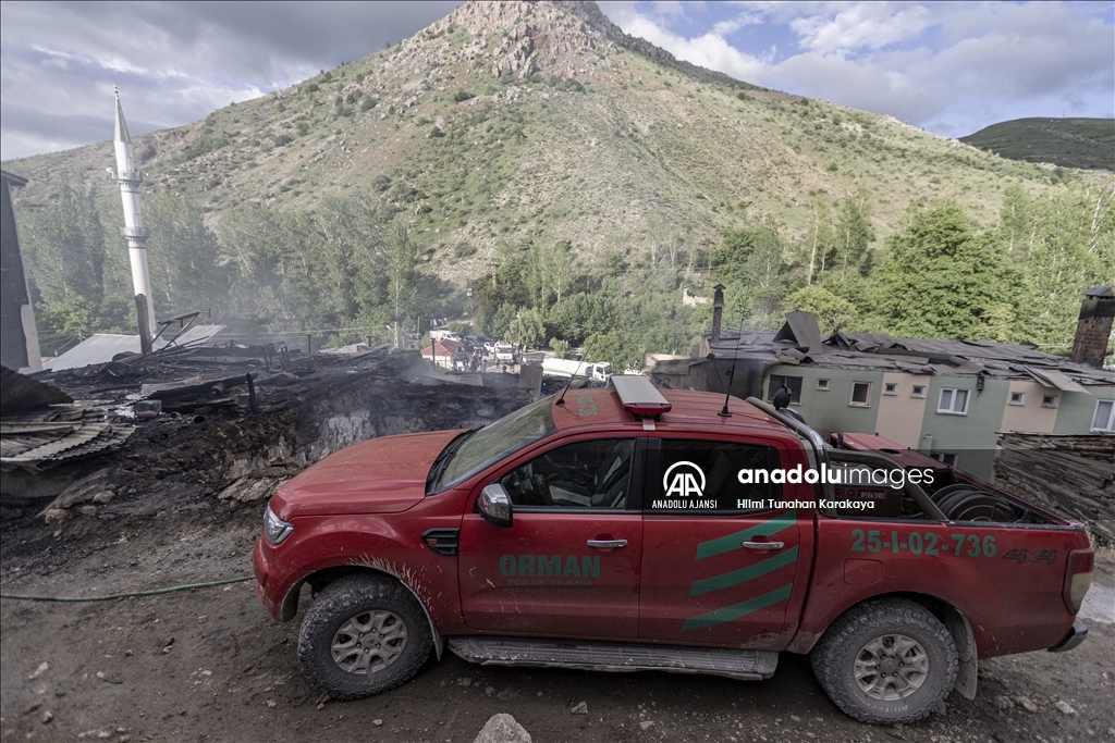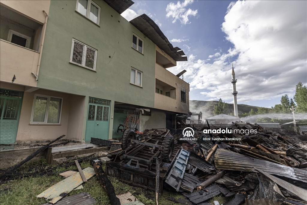 Erzurum'un Pazaryolu ilçesindeki kırsal mahallede çıkan yangında 12 ev kullanılamaz hale geldi.
