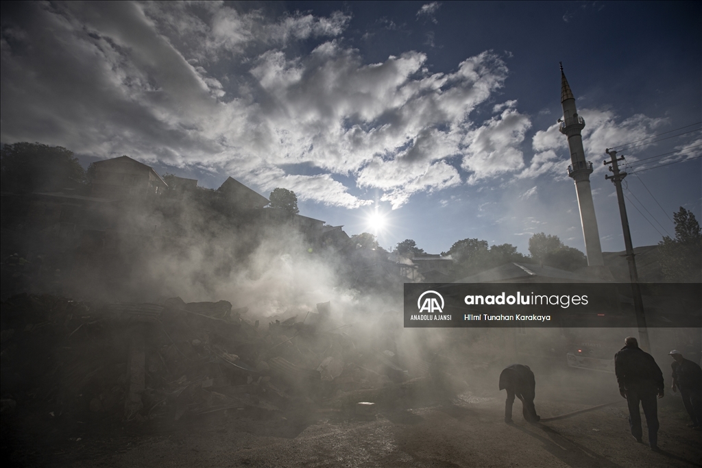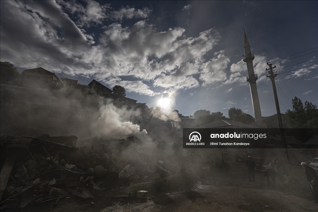 Erzurum'un Pazaryolu ilçesindeki kırsal mahallede çıkan yangında 12 ev kullanılamaz hale geldi. Yangın, ekiplerin ve vatandaşların çalışmasıyla söndürüldü. ( Hilmi Tunahan Karakaya - Anadolu Ajansı )Hilmi Tunahan Karakaya