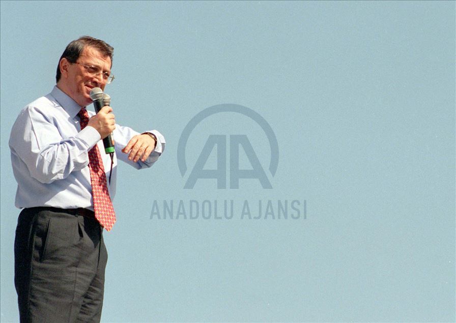 Eski Başbakanlardan Mesut Yılmaz hayatını kaybetti. 19 Mart 1999'da Anap Genel Başkanı Yılmaz, partisinin Sinop mitinginde halka hitap etti. (Arşiv)