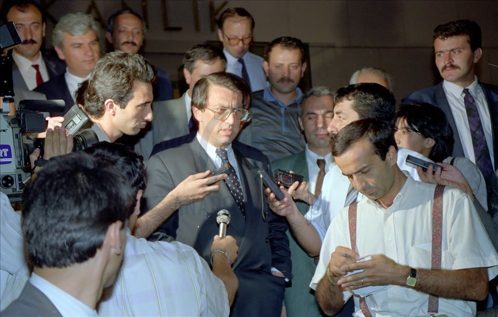 Eski Başbakanlardan Mesut Yılmaz hayatını kaybetti. 9 Ağustos 1991'de Başbakan Yılmaz, gazetecilere Kuzey Irak Operasyonu ile ilgili açıklamalarda bulundu. (Arşiv)