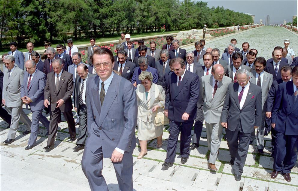 Eski Başbakanlardan Mesut Yılmaz hayatını kaybetti. 19 Haziran 1991'de Anap Merkez Karar Yönetim Kurulu Üyeleri ilk defa Genel Başkan Yılmaz, başkanlığında Anıtkabir'i ziyaret etti. (Arşiv)