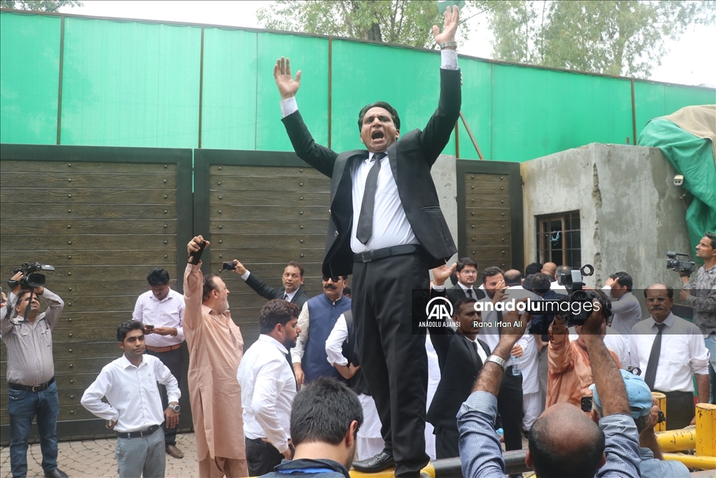 Pakistan polisi, mahkeme kararıyla eski Pakistan Başbakanı İmran Han'ı Lahor şehrindeki evinde tutukladı. Pakistan medyasında yer alan haberlere göre, Han, başbakanlığı döneminde aldığı hediyelerin ayrıntılarını açıklamadığı gerekçesiyle yargılandığı davada suçlu bulundu. İslamabad Mahkemesi, hakkında tutuklama kararı verdiği Han'ı 3 yıl hapis cezasına çarptırdı. Mahkeme kararının ardından destekçileri ve avukatlar Han'ın evinin önünde toplanarak destek gösterisinde bulundu. Polis bölgede güvenlik önlemleri aldı. ( Khurram Amin - Anadolu Ajansı )Khurram Amin