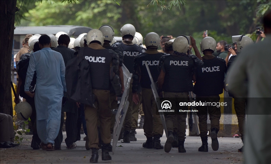 Pakistan polisi, mahkeme kararıyla eski Pakistan Başbakanı İmran Han'ı Lahor şehrindeki evinde tutukladı. Pakistan yasalarına göre başbakanlar, bakanlar, bürokratlar ve üst düzey devlet yetkilileri, yabancı devlet adamlarından aldıkları hediyeleri "Toshakhana" adı verilen departmana bildirmekle yükümlü. PTI hükümeti döneminde İmran Han'a sunulan hediyelerin bildirilmediği belirtiliyor. Polis, Han'ın evinin önünde destek gösterisi düzenleyenlere müdahale etti. ( Rana Irfan Ali - Anadolu Ajansı )Rana Irfan Ali