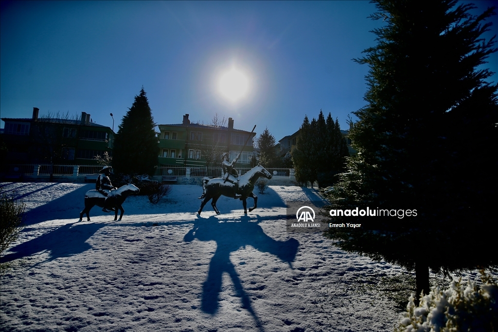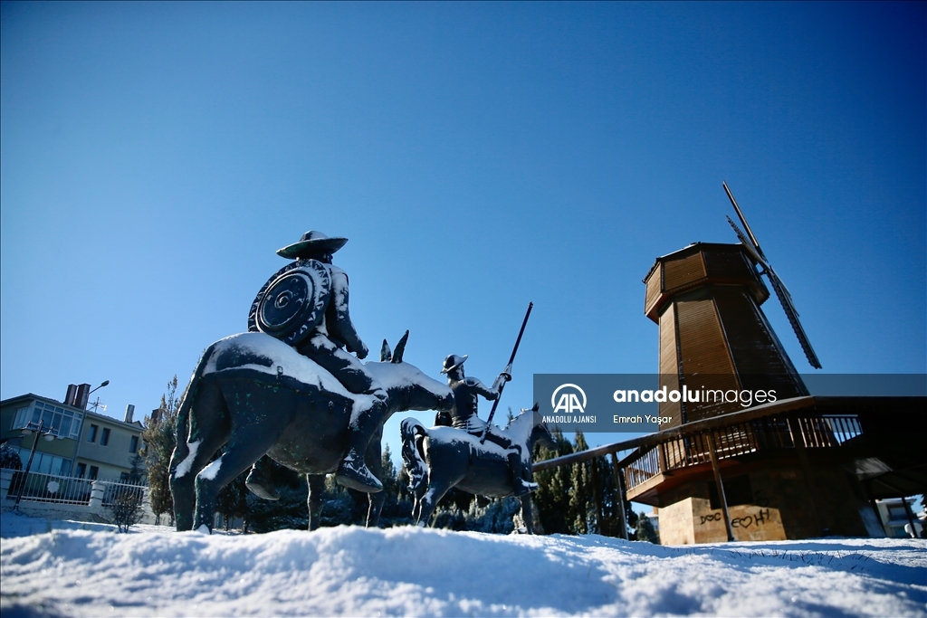 Eskişehir'de hava sıcaklığının düşmesinin ardından yağan kar, kent merkezinde beyaz örtü oluşturdu. Kar dolayısıyla Odunpazarı ilçesi Çankaya Mahallesi'ndeki "Don Kişot" temalı Şelale Park'ta da güzel manzaralar kaydedildi. ( Emrah Yaşar - Anadolu Ajansı )Emrah Yaşar